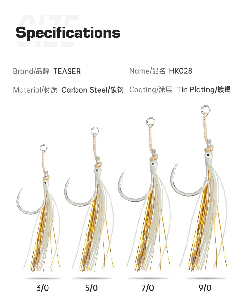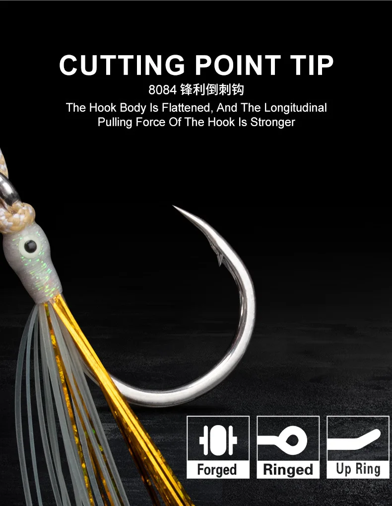 3 uds 3/0 5/0 7/0 9/0 anzuelo fuerte anzuelo individual anzuelos de Jigging lento anzuelo de pesca Assis anzuelos calamar luminoso pulpo
