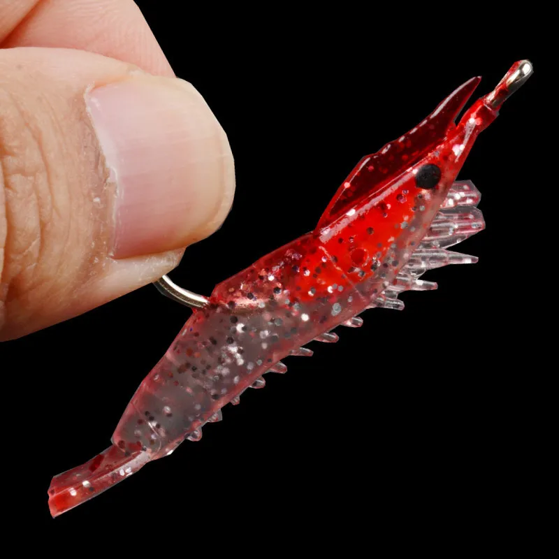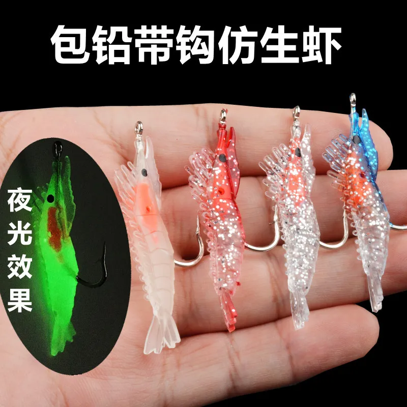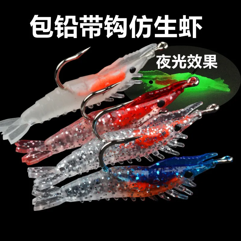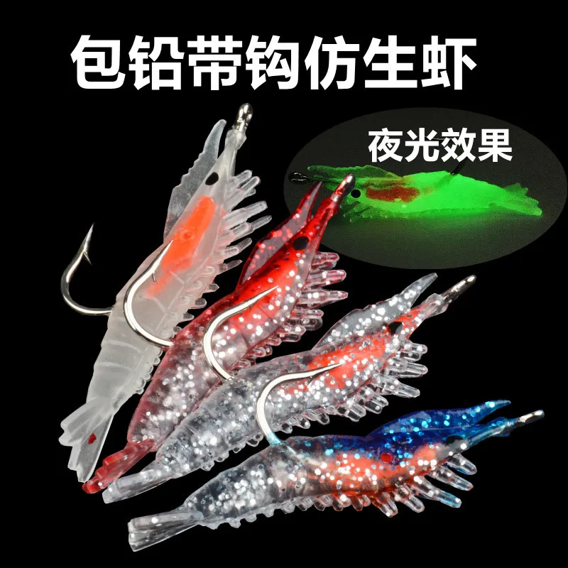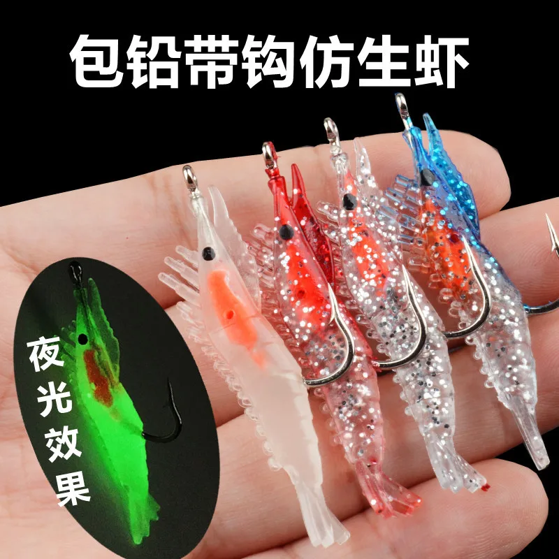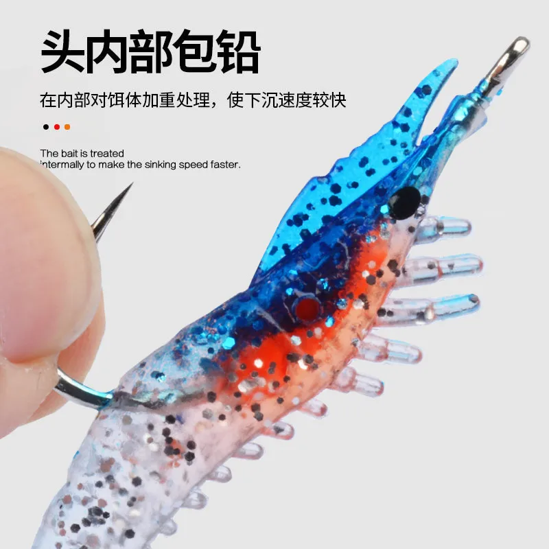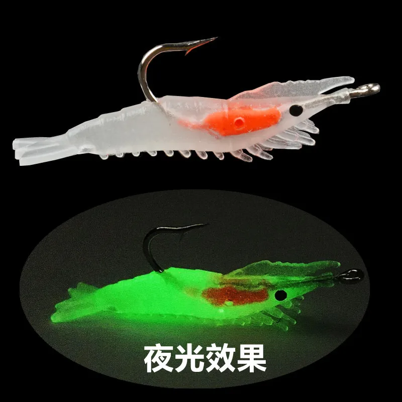 3 uds 60mm 3g Plantillas de cabeza de plomo Señuelos de pesca de camarones suaves señuelos de silicona artificiales luminosos para aparejos de agua dulce y salada