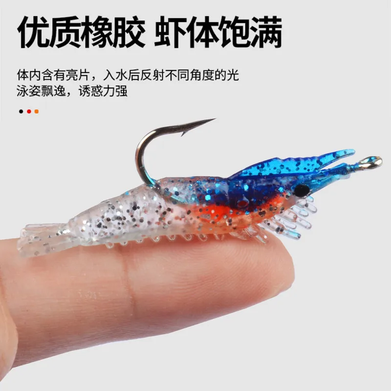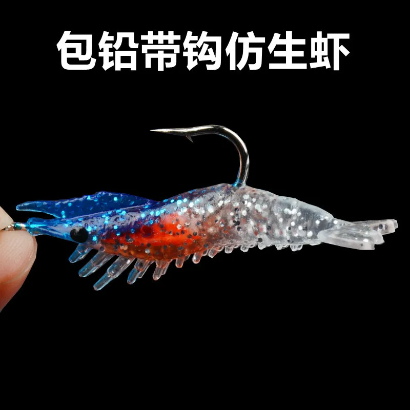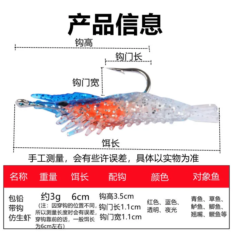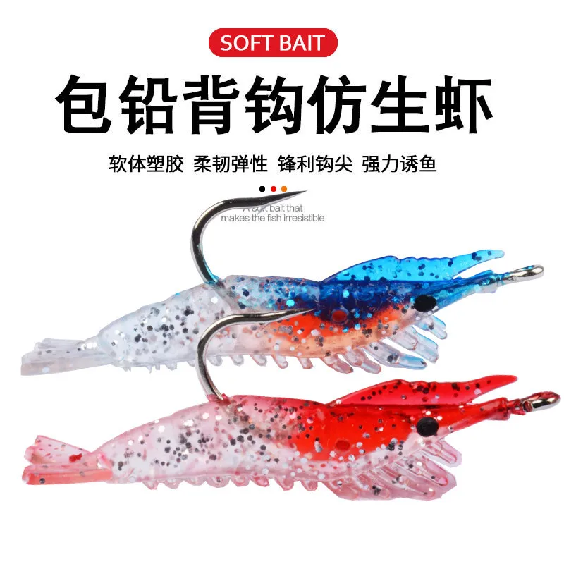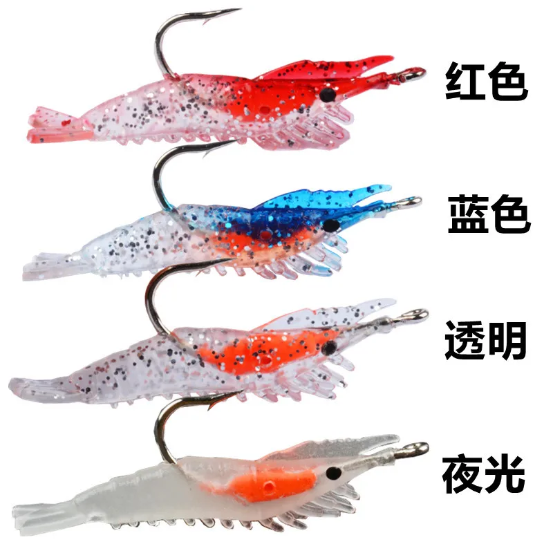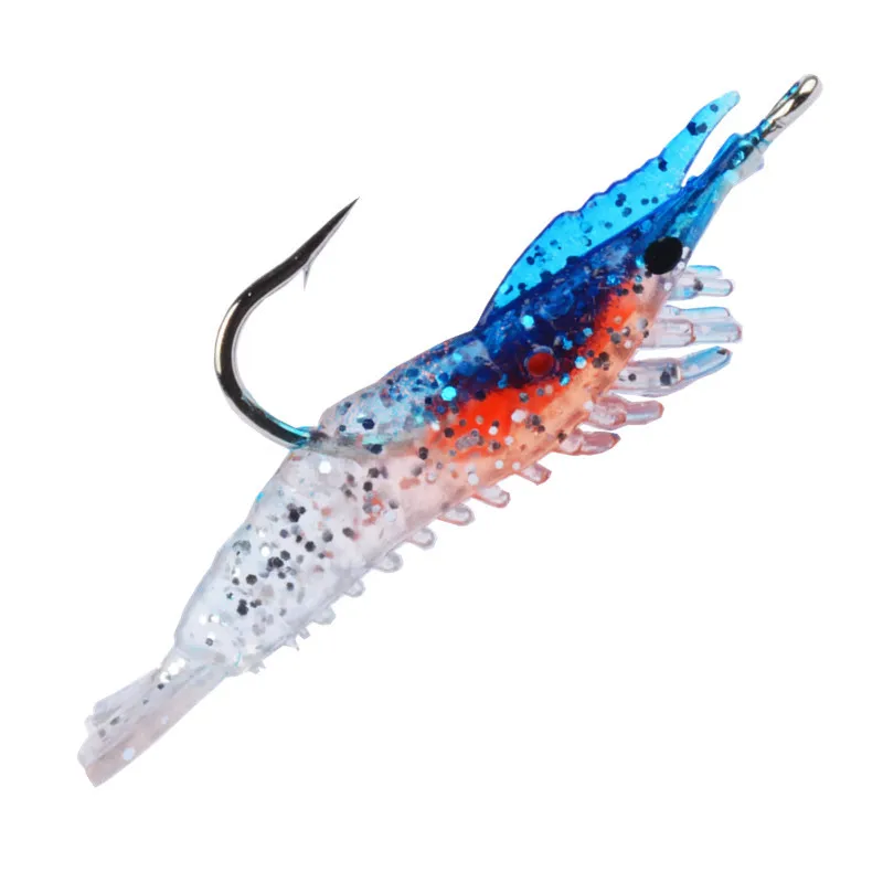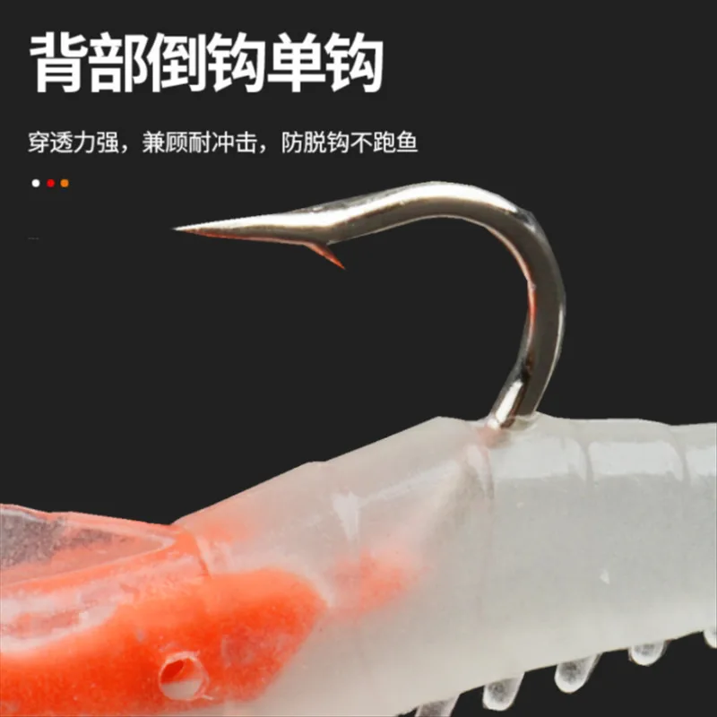 3 uds 60mm 3g Plantillas de cabeza de plomo Señuelos de pesca de camarones suaves señuelos de silicona artificiales luminosos para aparejos de agua dulce y salada