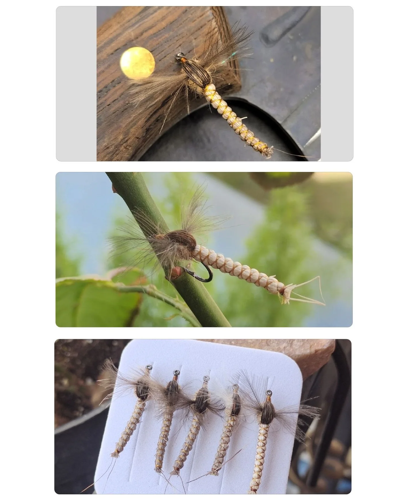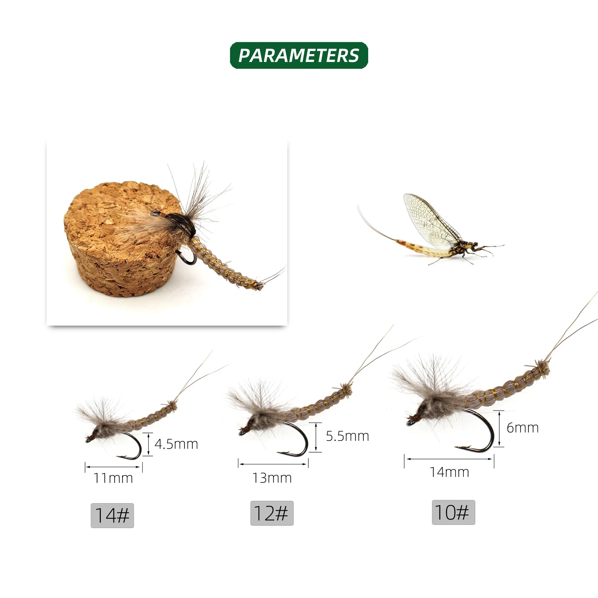 Al imitar la metamorfosis de una mayfly adulta, está hecho de materiales naturales puros como pelo de venado, CDC, pelo de faisão, pelo de conejo y tiene un buen efecto de captura en los peces depredadores de agua dulce como trucha arcoíris, salmón a gran escala y hinojo ártico..