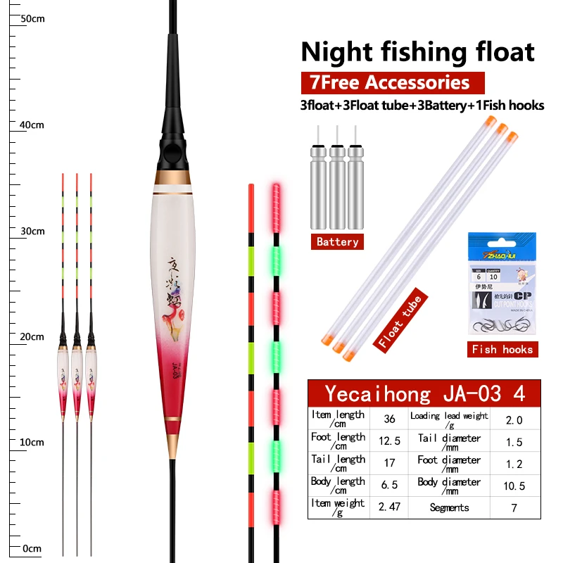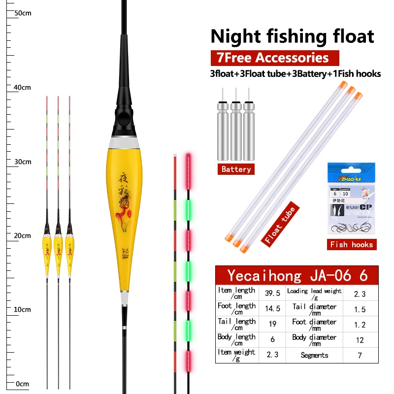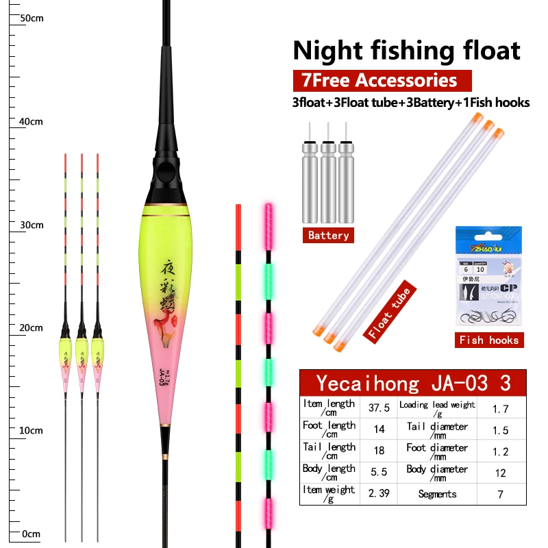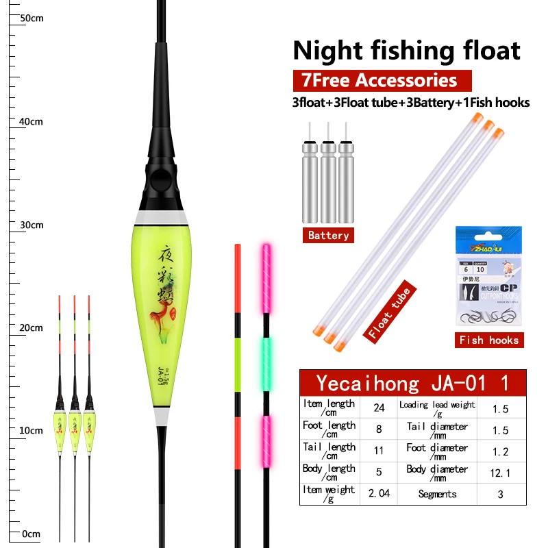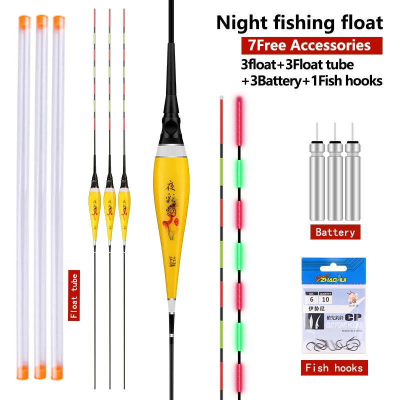 3 uds flotadores de pesca luminosos + 3 CR425 + 3 tubos flotantes + 1 bolsa ganchos noche Nano boya eléctrica accesorios de herramientas de pesca de agua dulce