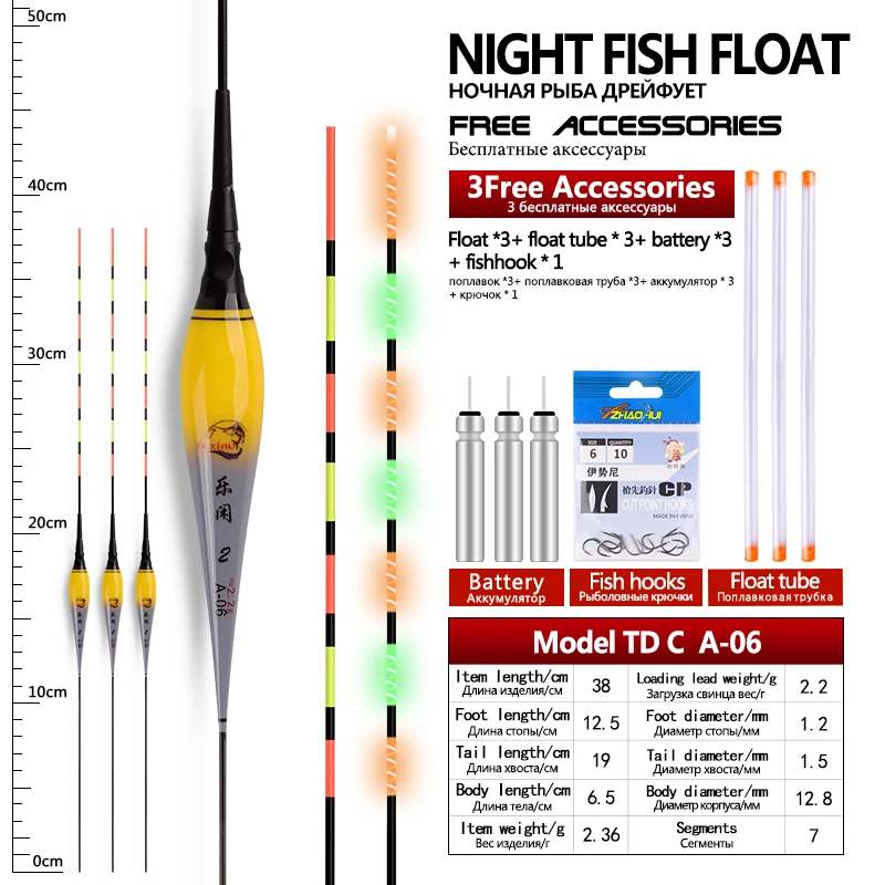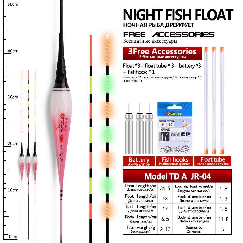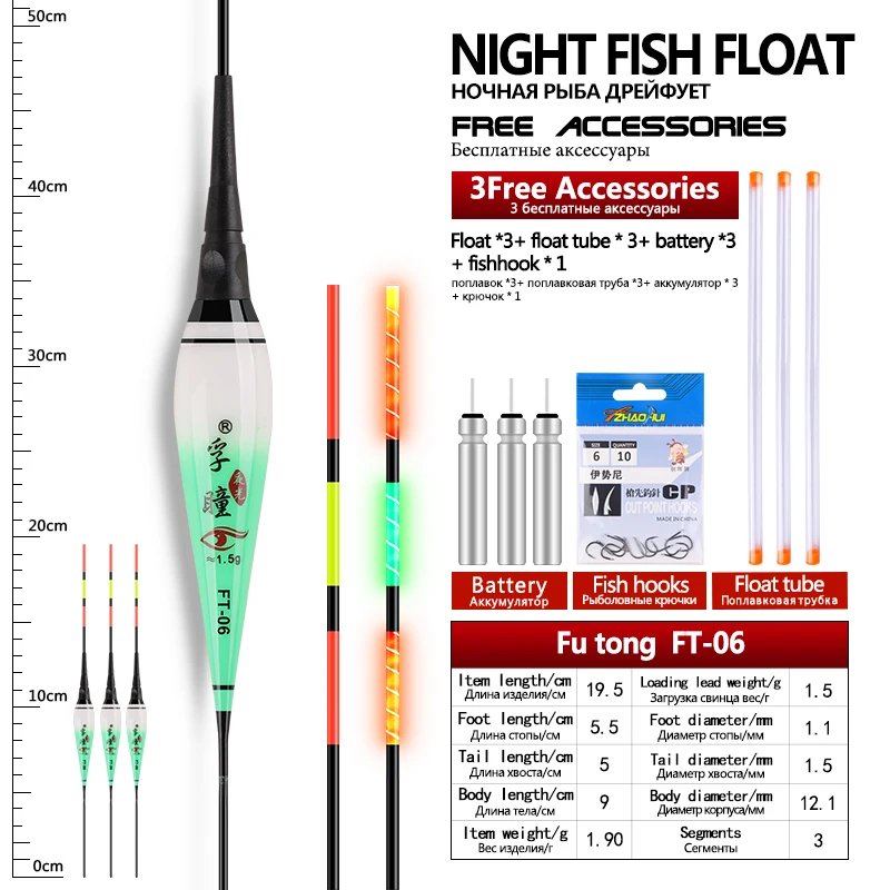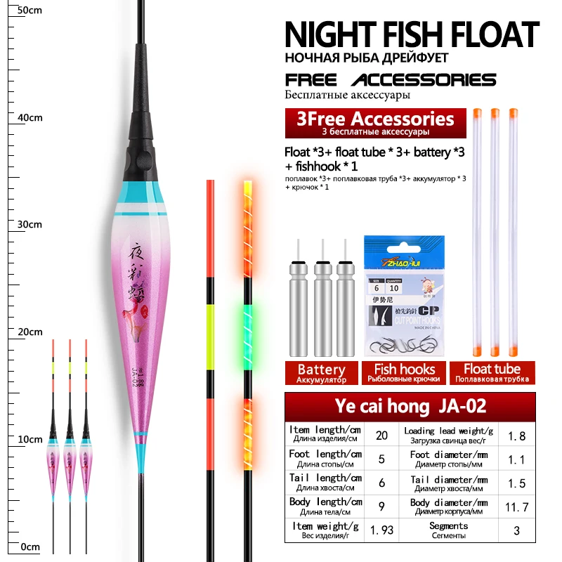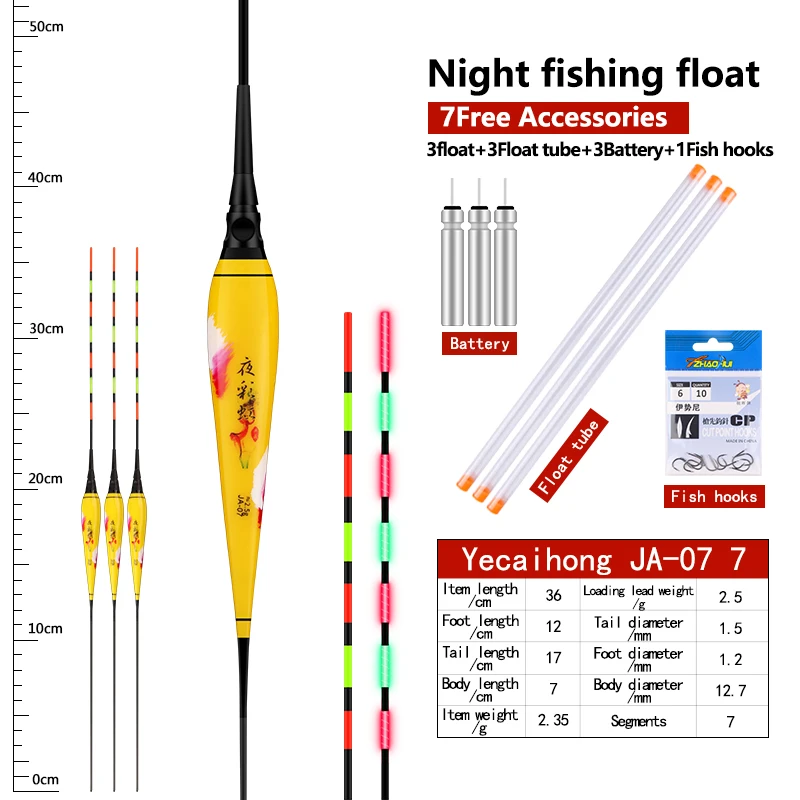 3 uds flotadores de pesca luminosos + 3 CR425 + 3 tubos flotantes + 1 bolsa ganchos noche Nano boya eléctrica accesorios de herramientas de pesca de agua dulce
