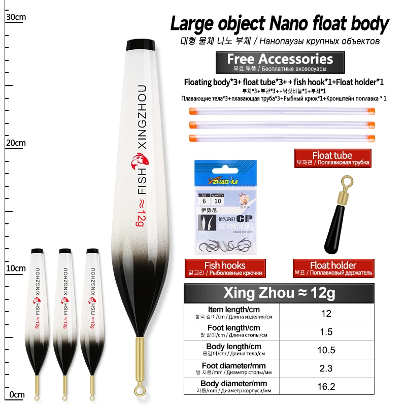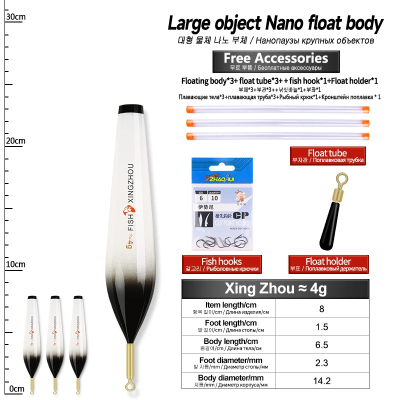 3 uds Nano flotador luminoso cuerpo flotador pie + 3 uds tubos + 1 gancho para bolsa + 1 descanso flotante cuerpo de boya eléctrica sin cola sin aparejos de pesca CR425