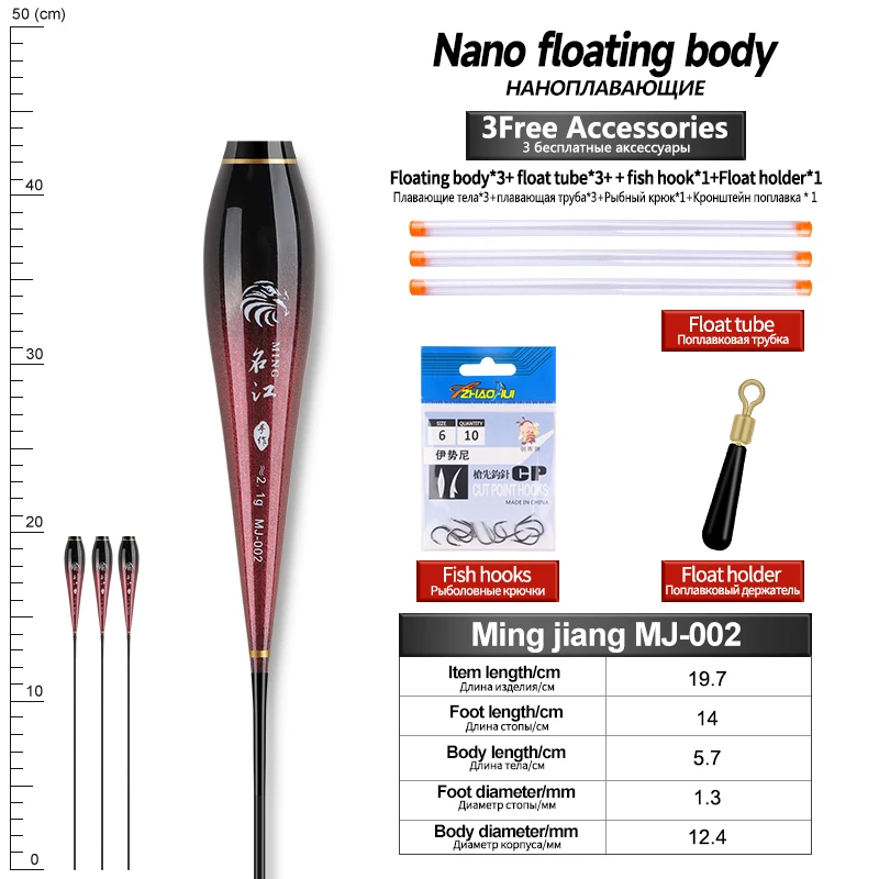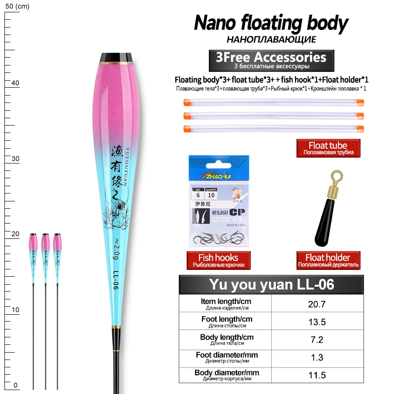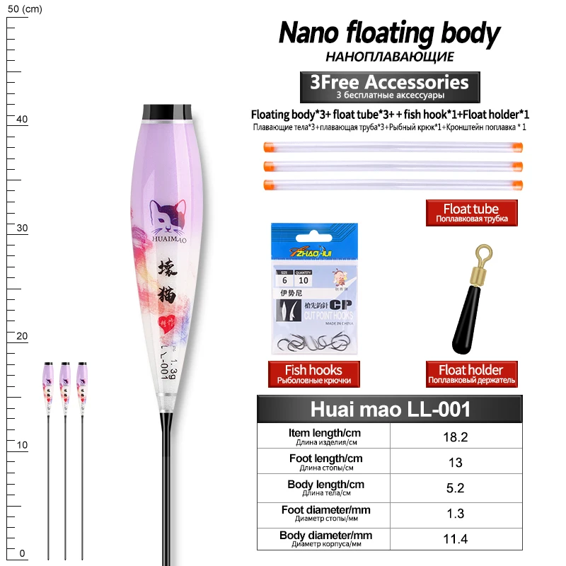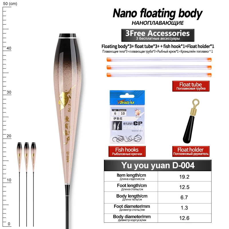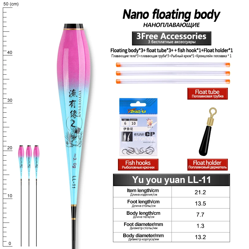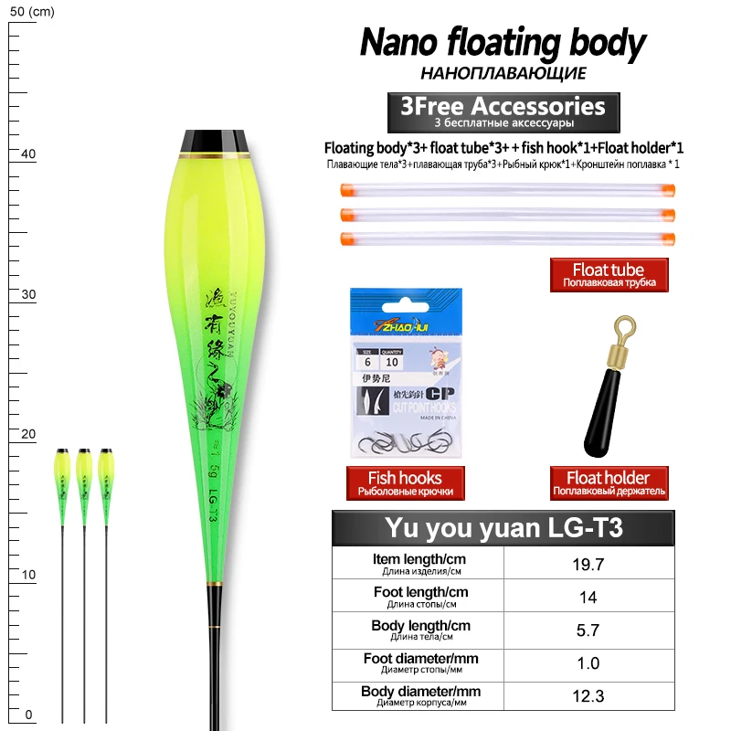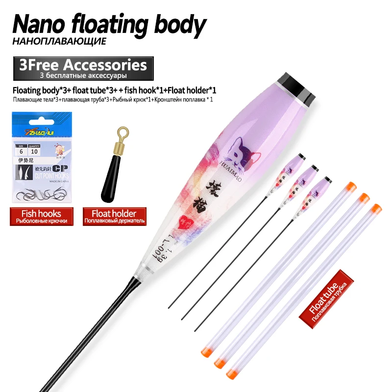 Flotador Nano Luminoso para el Cuerpo, Pies Flotantes, 3 Tubos, 1 Bolsa, Anzuelos, 1 Flotador, Cuerpo Flotador, Sin Cola, Sin Batería CR425, Herramientas de Pesca, 3