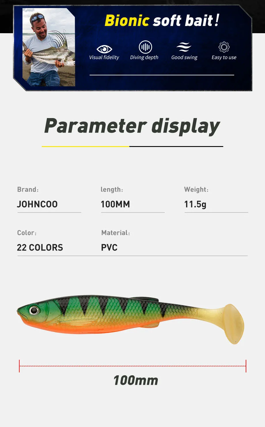3 uds/pkt Swimbait 100mm 11,5g Shad Pike señuelos impresión de silicona Artificial para gran captura pesca en el mar Wobbler