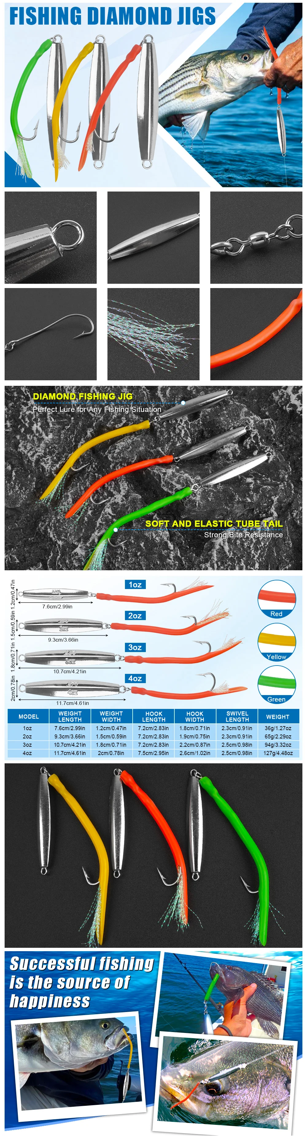 1.Plantillas de diamante La cola del tubo hecha de material de silicona elástico suave tiene una fuerte resistencia a las mordeduras que hace que estas plantillas de diamante duren más.Gancho largo de anguila de acero inoxidable, duradero y resistente a la corrosión.