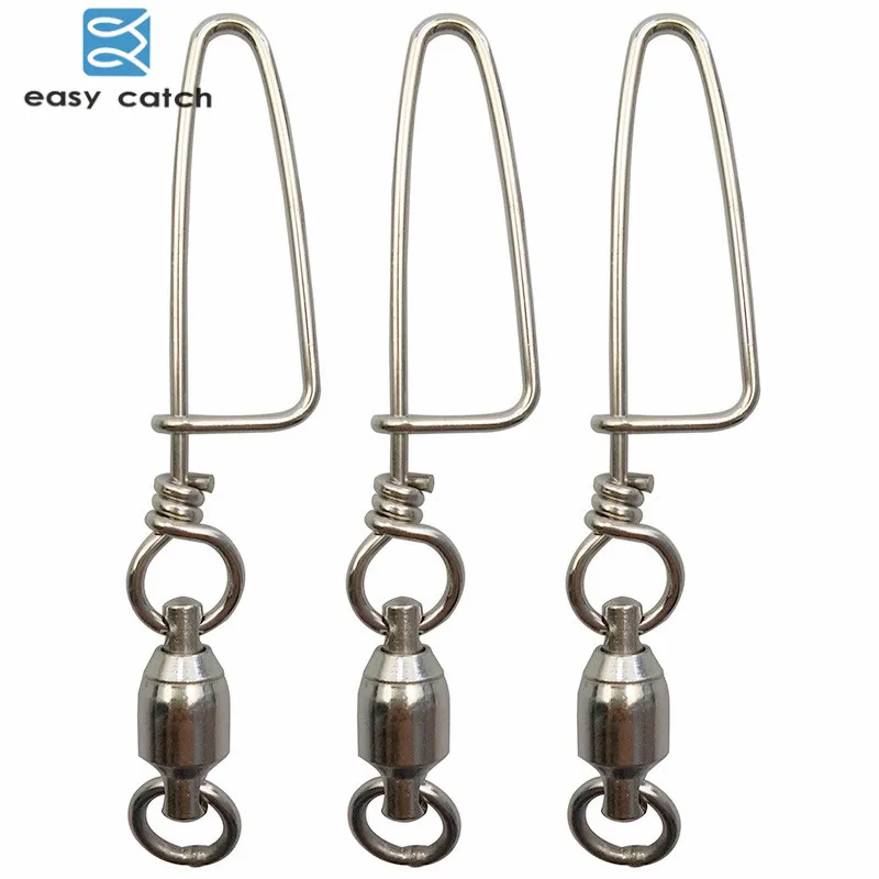 Fácil de atrapar 3 piezas rodamiento de bolas giratorio de pesca con cierre de costa accesorios de conector de señuelo de pesca duro de acero inoxidable plateado