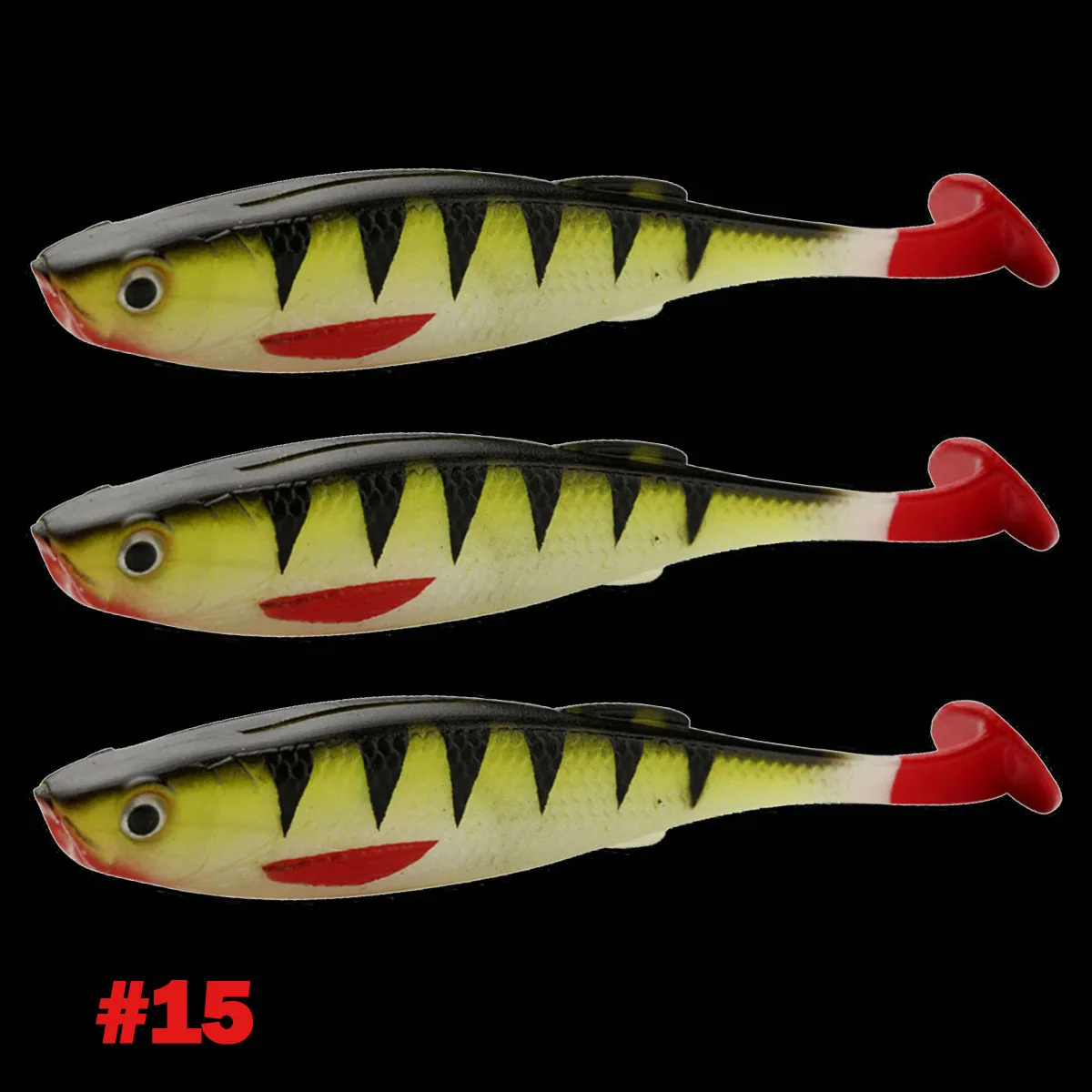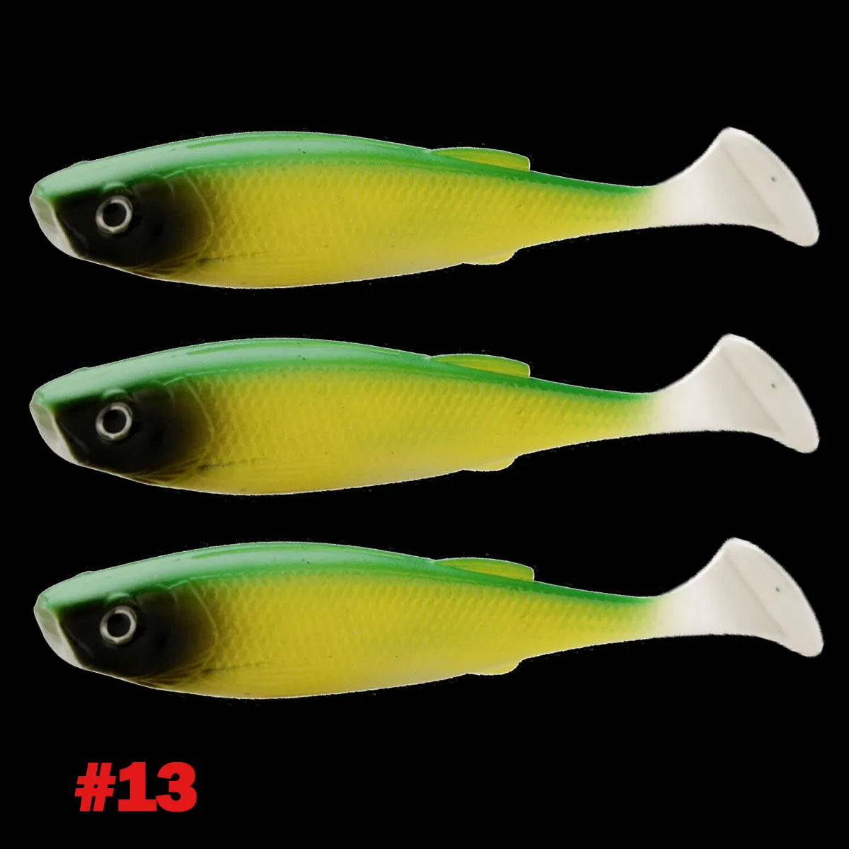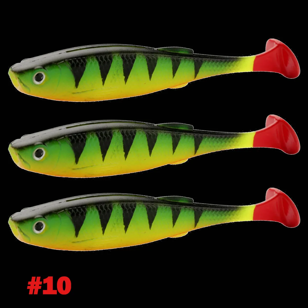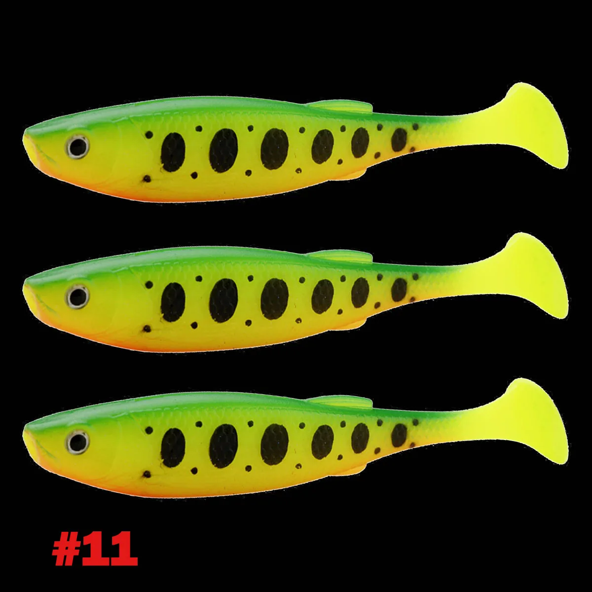 3 uds Shad cebo Zander Pike Señuelos de Pesca Swimbait 10cm 11,5g cola de paleta realista señuelo de plástico suave cebo deslizante para lubina