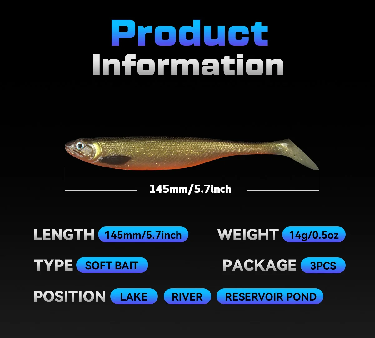 1 Uds. Señuelo de pesca suave de 14,5 cm, 5,7 pulgadas, 14g, 0,5 oz, cebos de pescado, cebo de pesca suave impreso más fino y detallado