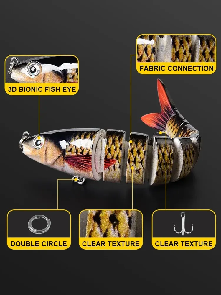 • Diseño multiarticulado:El diseño multiarticulado de este señuelo de pesca permite un movimiento realista en el agua, atrayendo Peces depredadores y aumentando sus posibilidades de una captura exitosa.