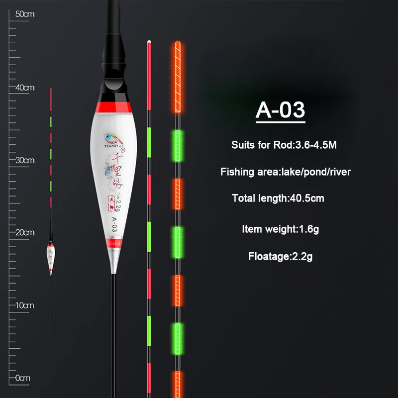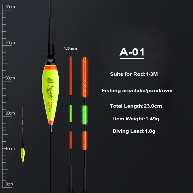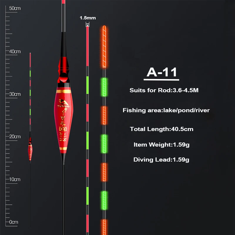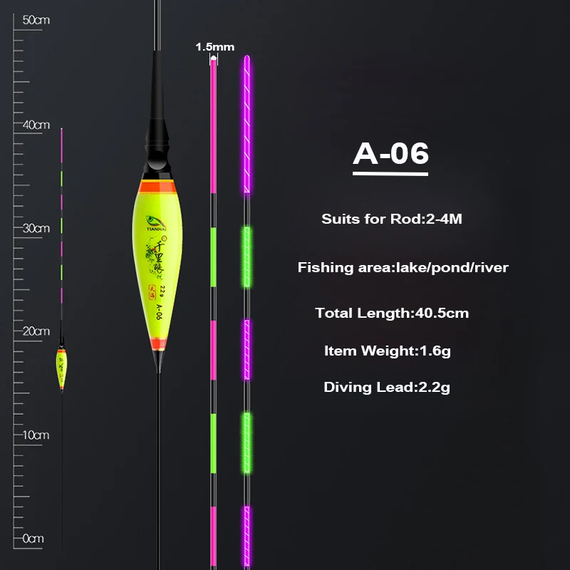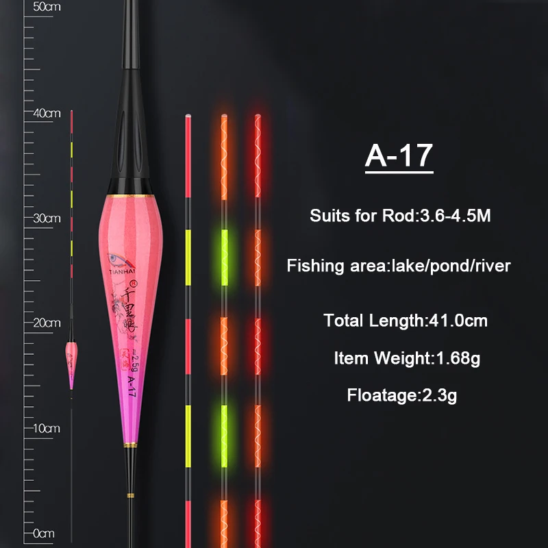 Tipo de producto: Flotador de pescaMaterial: nanoplástico compuestoDimensión del producto: ver en las imágenes de abajoLista de paquetes: