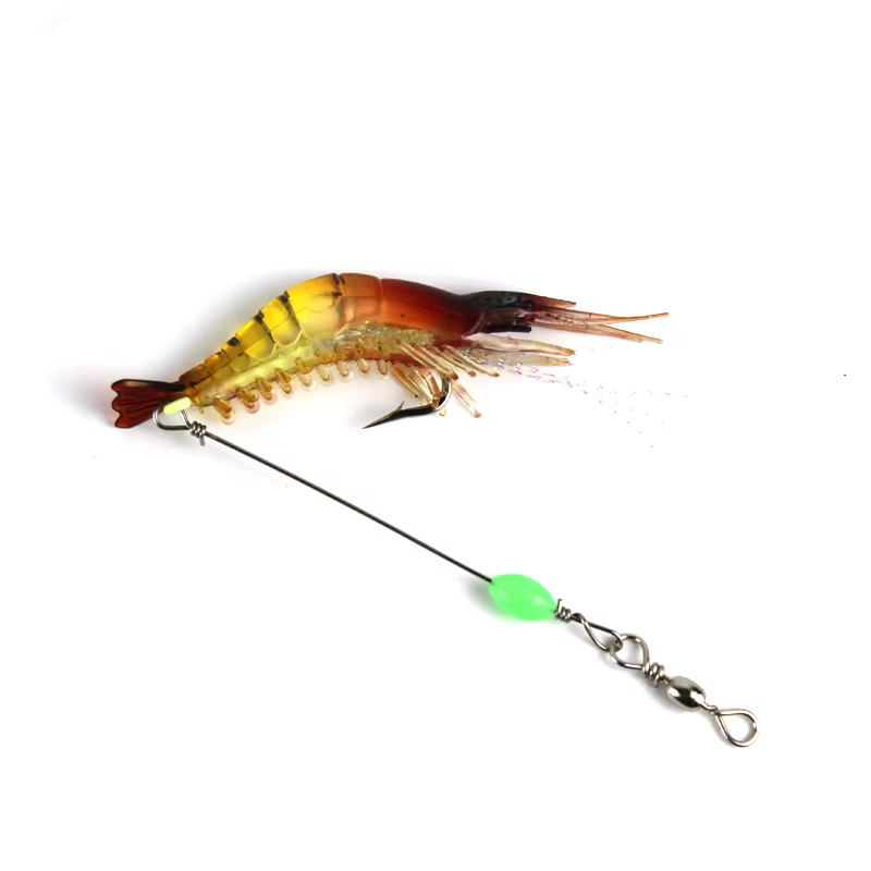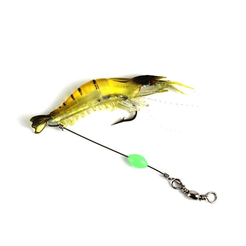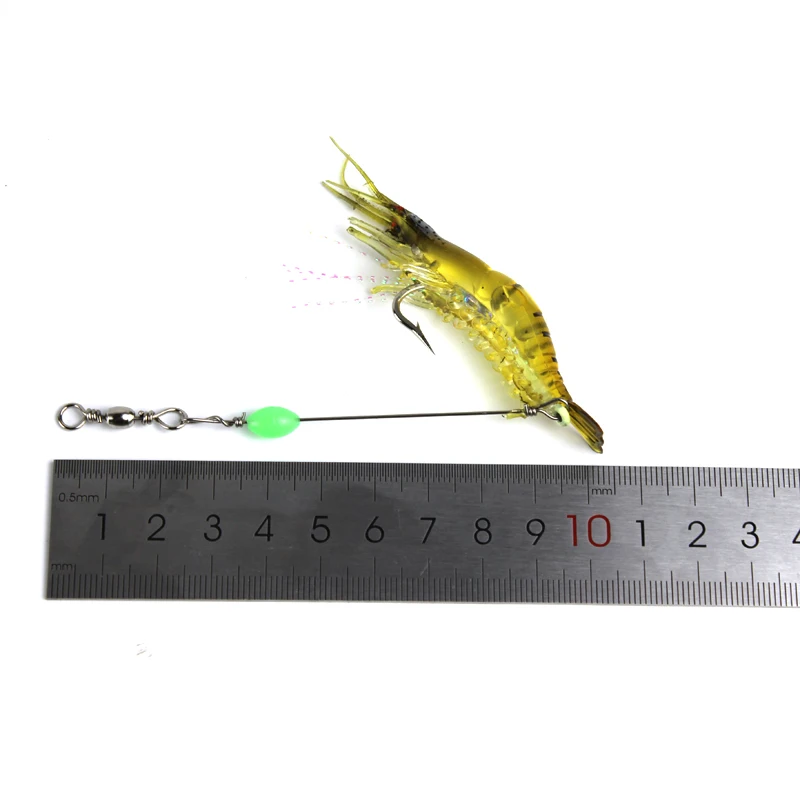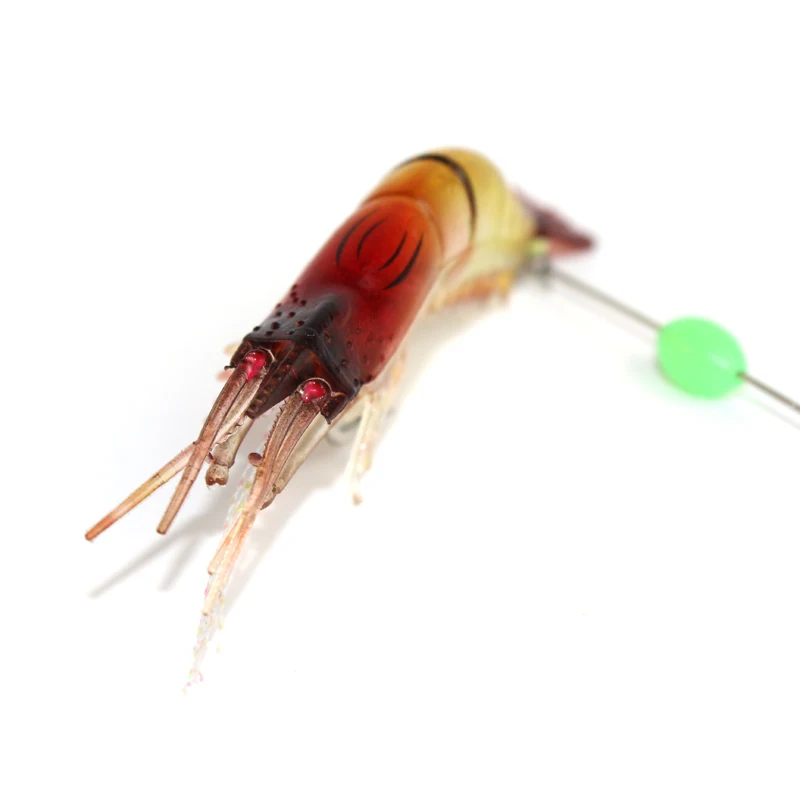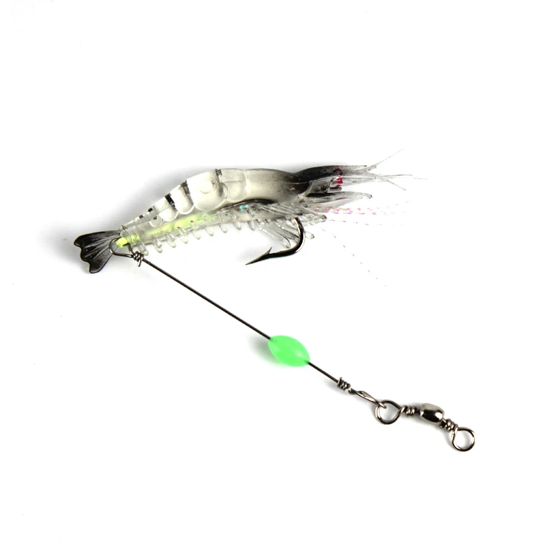 3 unids/lote señuelo de pesca suave de camarones 9cm 6g cebo Artificial con cuentas luminosas gancho giratorio señuelo de camarón realista pesca de carpa YE74