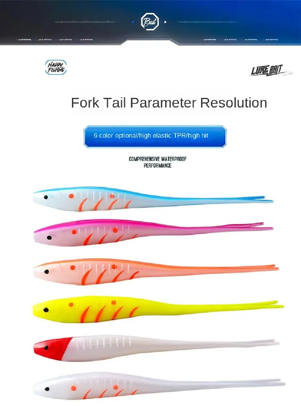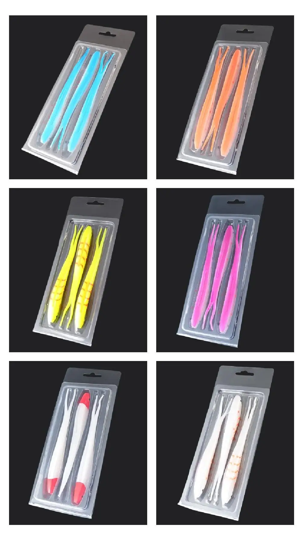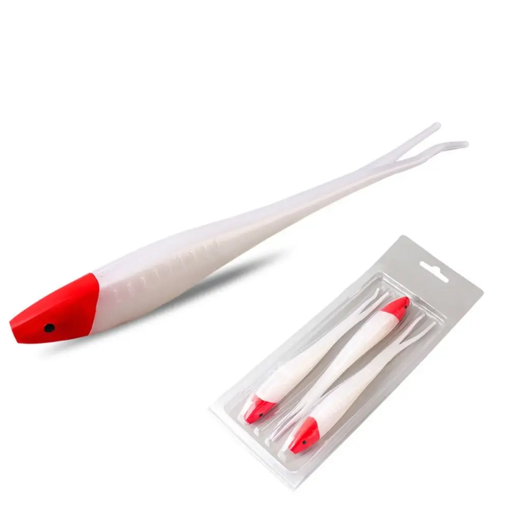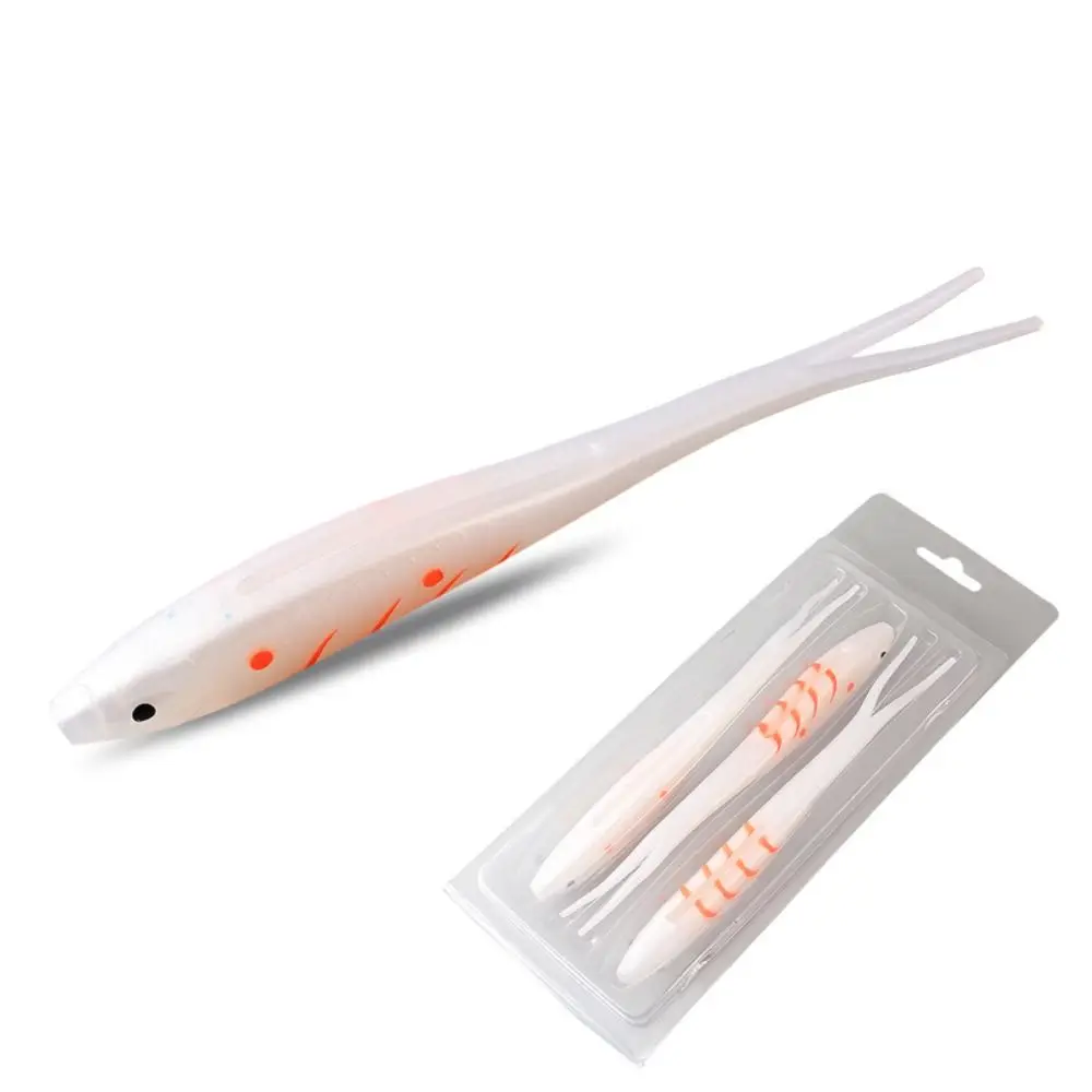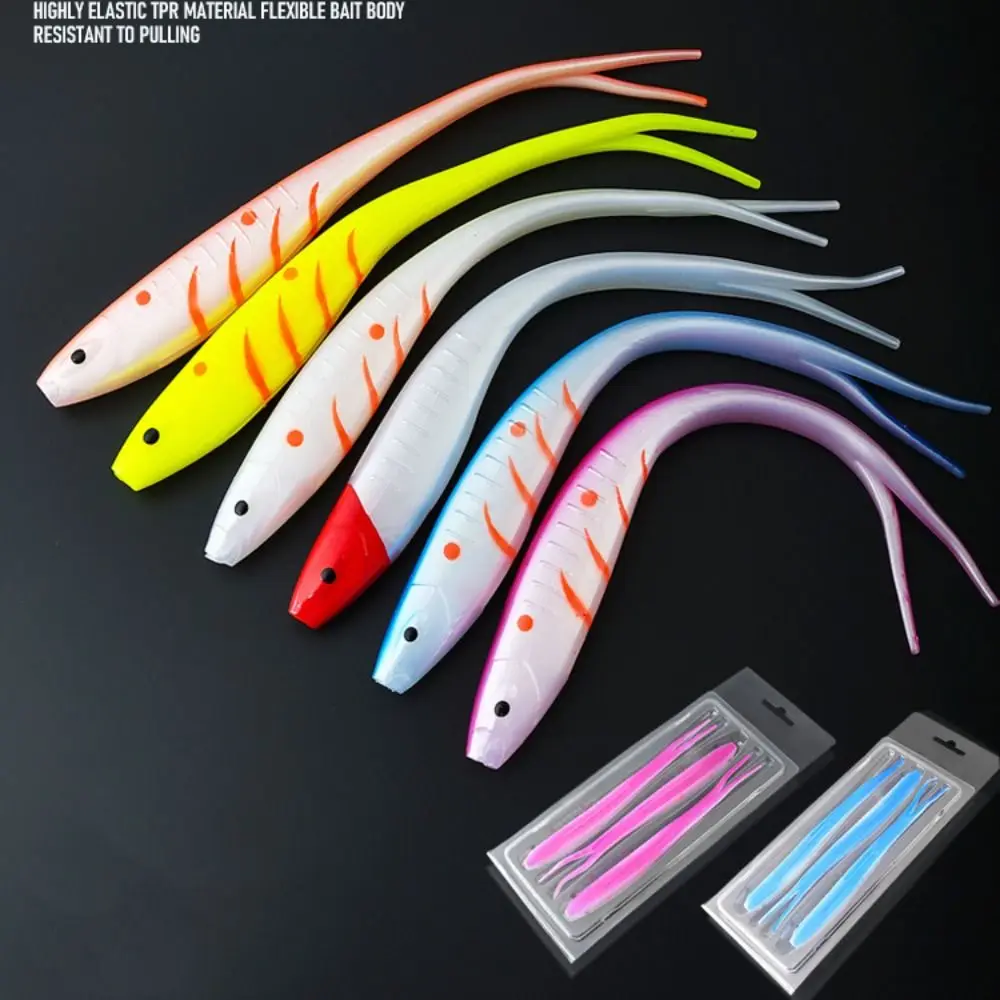 ¡100% nuevo y de alta calidad! Tipo: Señuelos blandos de pesca Material: TPR Color: azul/naranja/rosa/amarillo/blanco Longitud: 17,5 cm (6,89 pulgadas) Peso: 18 g Características: 1. Diseño único de cola dividida que imita el movimiento de natación de los peces, atrayendo más picaduras y aumentando su tasa de captura. 2. Fabricado con materiales blandos de alta calidad que son duraderos y resistentes, lo que permite múltiples usos. 3. Cuenta con un proceso de pintura con impresión 3D que crea una apariencia realista, aumentando su eficacia al atraer peces. 4. Adecuado para una variedad de especies de peces de agua dulce y salada, incluidos lubina, salmón, bacalao y más. 5. Fácil de montar con sus anzuelos o cabezales de plantilla preferidos, brindando versatilidad en su configuración de pesca. El paquete incluye: 3 unidades por paquete de señuelos blandos de pesca Notas: El producto puede tener un error de 1-2 cm (0,39-0,79 pulgadas) y el color puede verse un poco diferente al de la imagen, por favor comprenda.