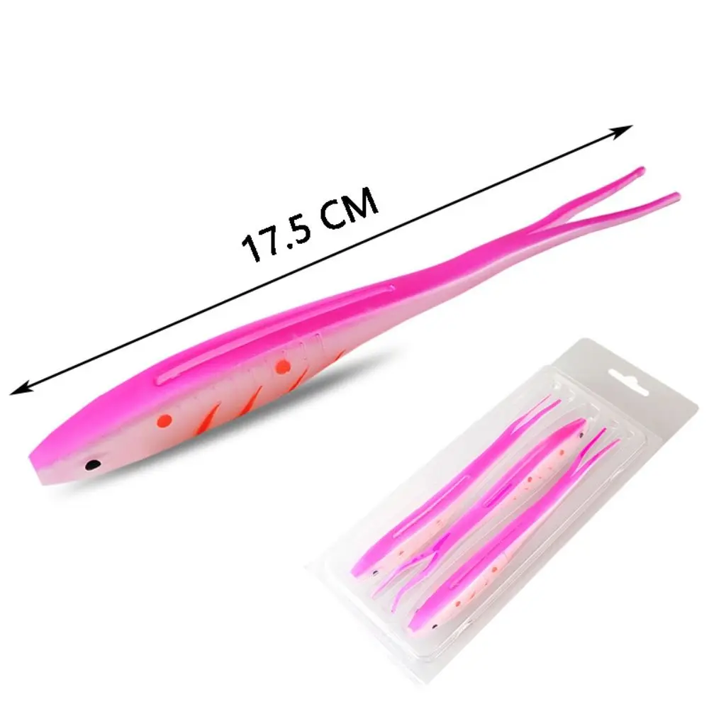 100% Brand New and High Quality!!! Type: Fishing Soft Lures Material: TPR Color: blue/ orange/ pink/ yellow/ white Length: 17.5cm(6.89in) Weight: 18g Features: 1.Unique split tail design that mimics the swimming motion of fish, attracting more bites and increasing your catch rate. 2. Made from high-quality soft materials that are durable and resilient, allowing for multiple uses. 3. Features a 3D printing painting process that creates a realistic appearance, increasing its effectiveness in attracting fish. 4. Suitable for a variety of freshwater and saltwater fish species, including bass, salmon, cod, and more. 5. Easy to rig with your preferred hooks or jig heads, providing versatility in your fishing setup. Package Include: 3PCS/Pack Fishing Soft Lures Notes: The product may have an error of 1-2cm(0.39-0.79in),and the color may look a little different from the picture,pls understand.