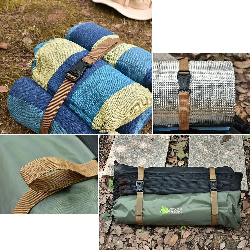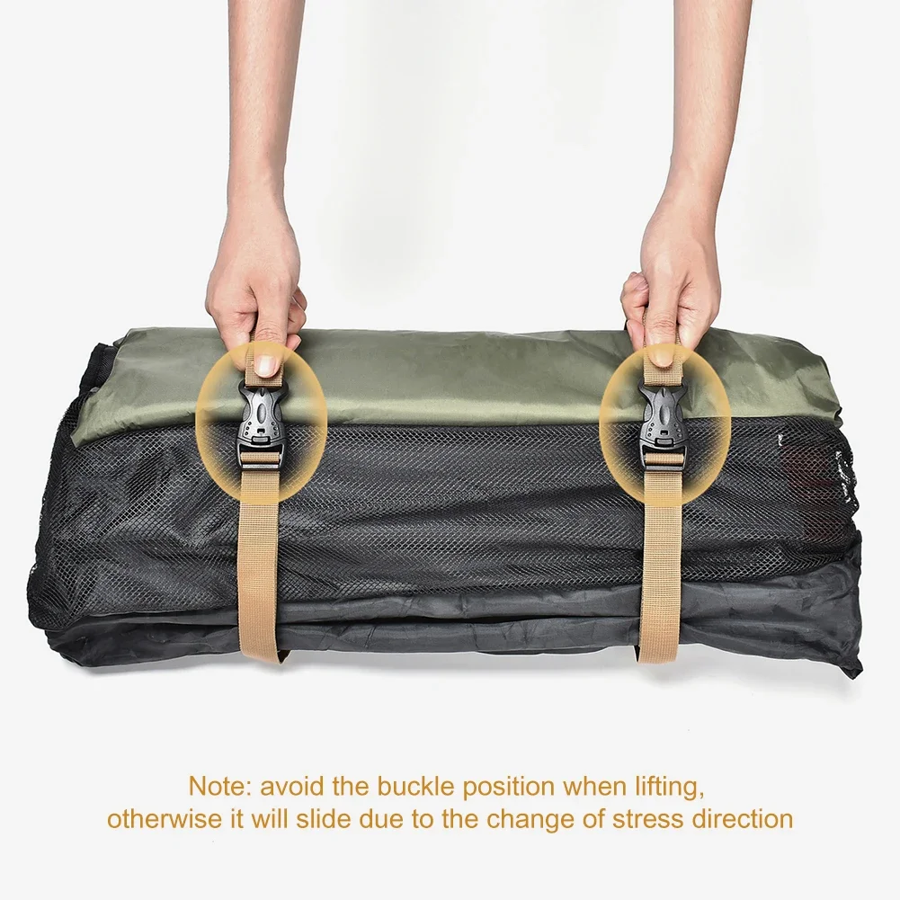 1.Cinturón de unión tipo hebilla de seguro doble para garantizar seguridad, fuerte fuerza de fijación y robustez.Puede almacenar tapetes de gran tamaño a prueba de humedad, postes de metal, leña, bolsas impermeables, sacos de dormir y tapetes de picnic, postes de dosel y otras cosas, fácil uso y almacenamiento.