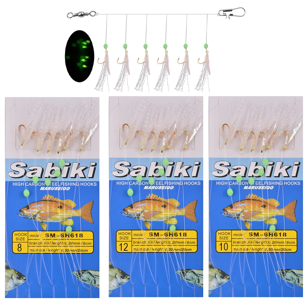 Sabiki-señuelo de pesca en agua salada, anzuelo de pesca brillante de seda, 30 bolsas/15 bolsas