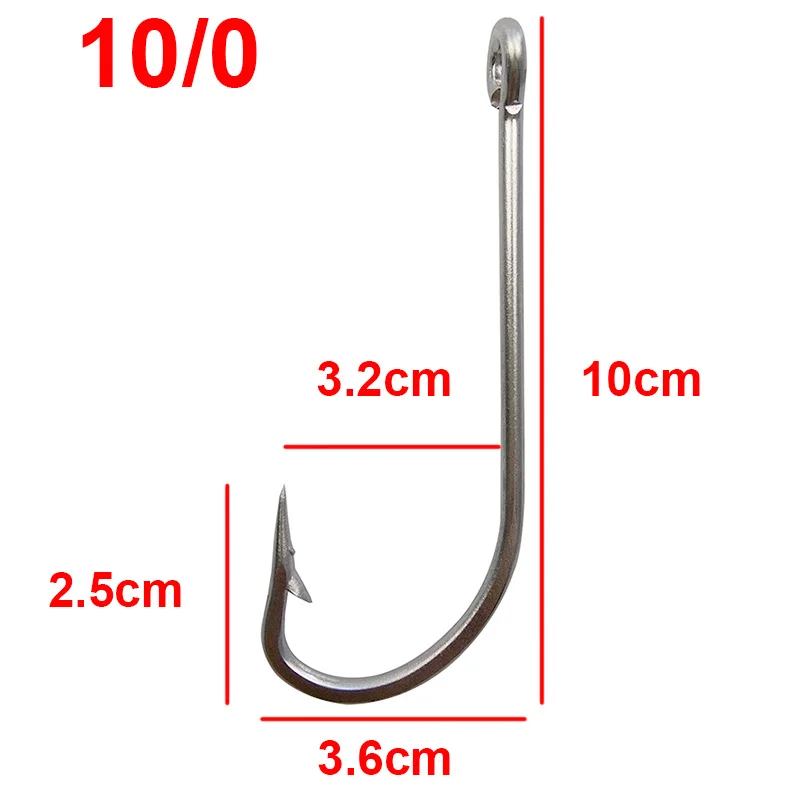 30 Uds. Anzuelos de pesca de acero inoxidable 34007, anzuelo de pesca de vástago extra largo blanco grande, tamaño 1/0 2/0 3/0 4/0 6/0 7/0 8/0 9/0 10/0