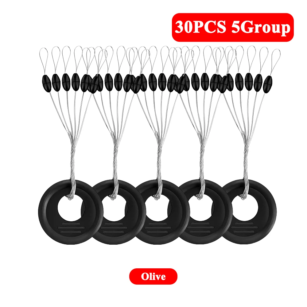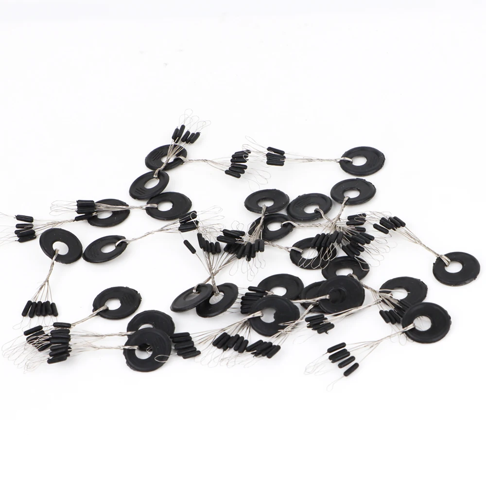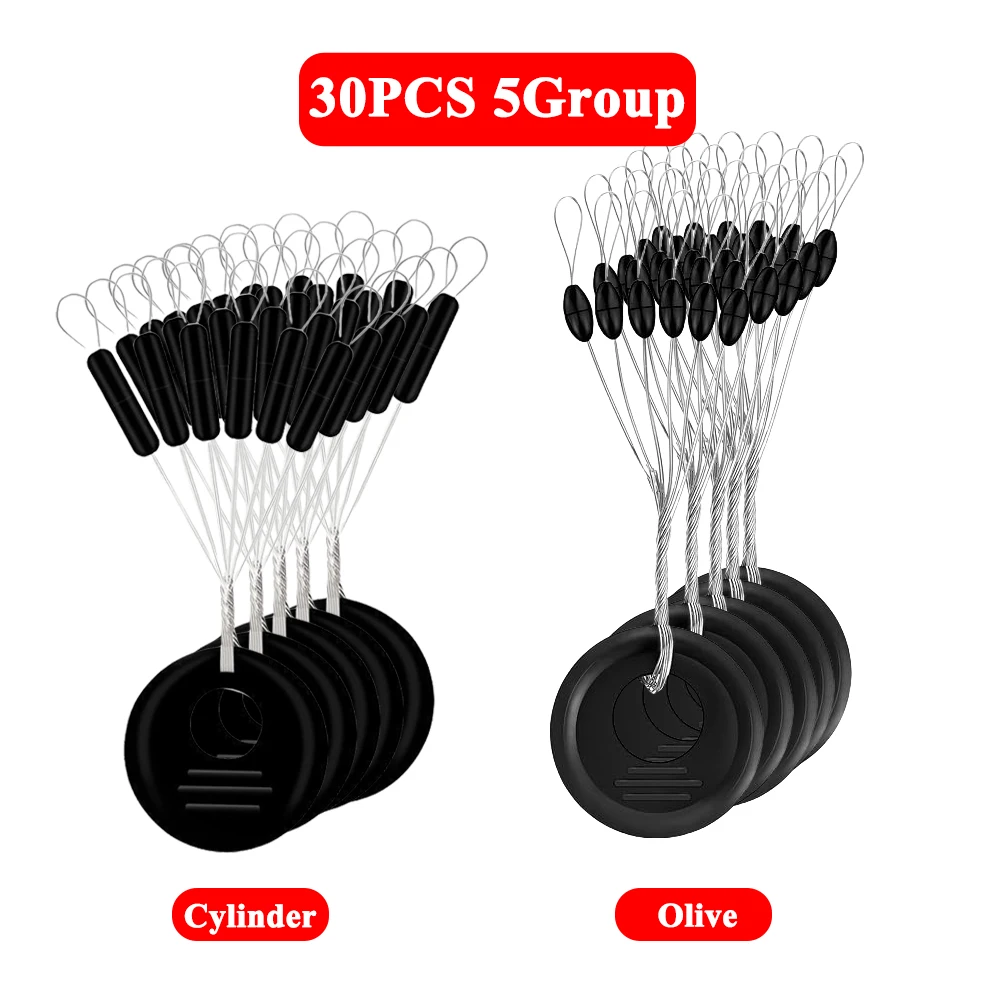 30Pcs 5Set Black Rubber Space Beans Oval Stopper Fishing Bobber Float 6 in 1Catfish Flotador Fishing Float Folat Line Stops
