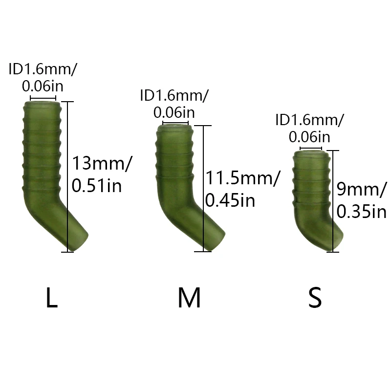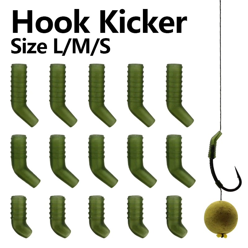 30 Uds. Accesorios de pesca de carpa gancho Kicker tamaño S/M/L mangas de anzuelo de pez verde alineador Mangas antienredos para pesca de carpa aparejo de pelo
