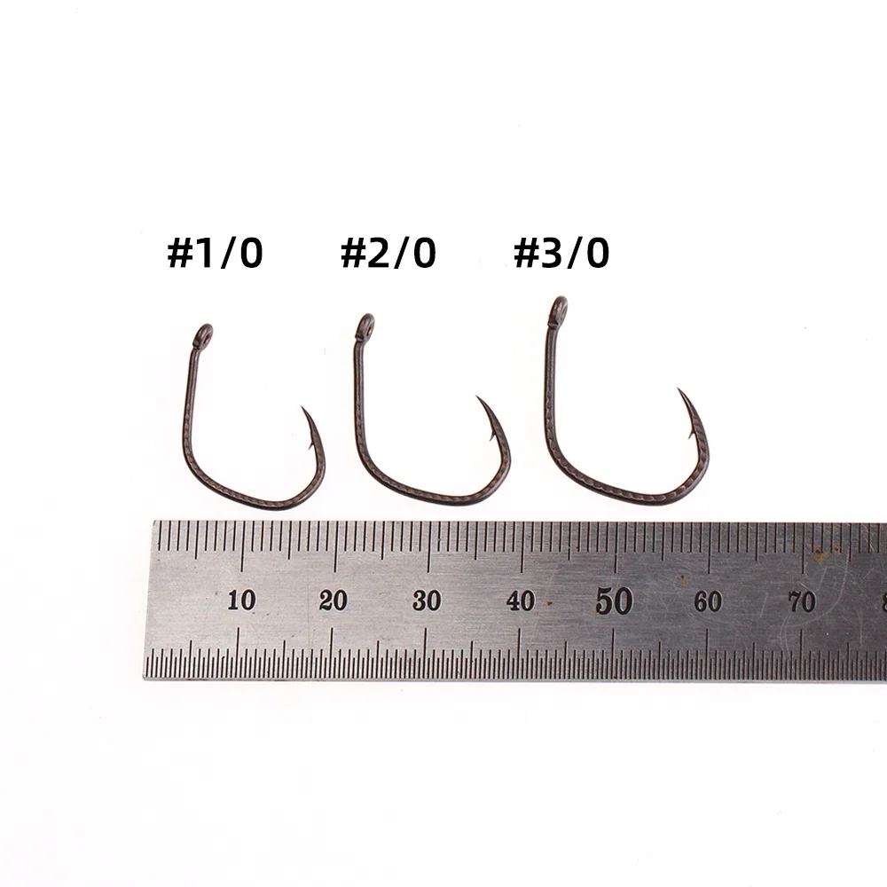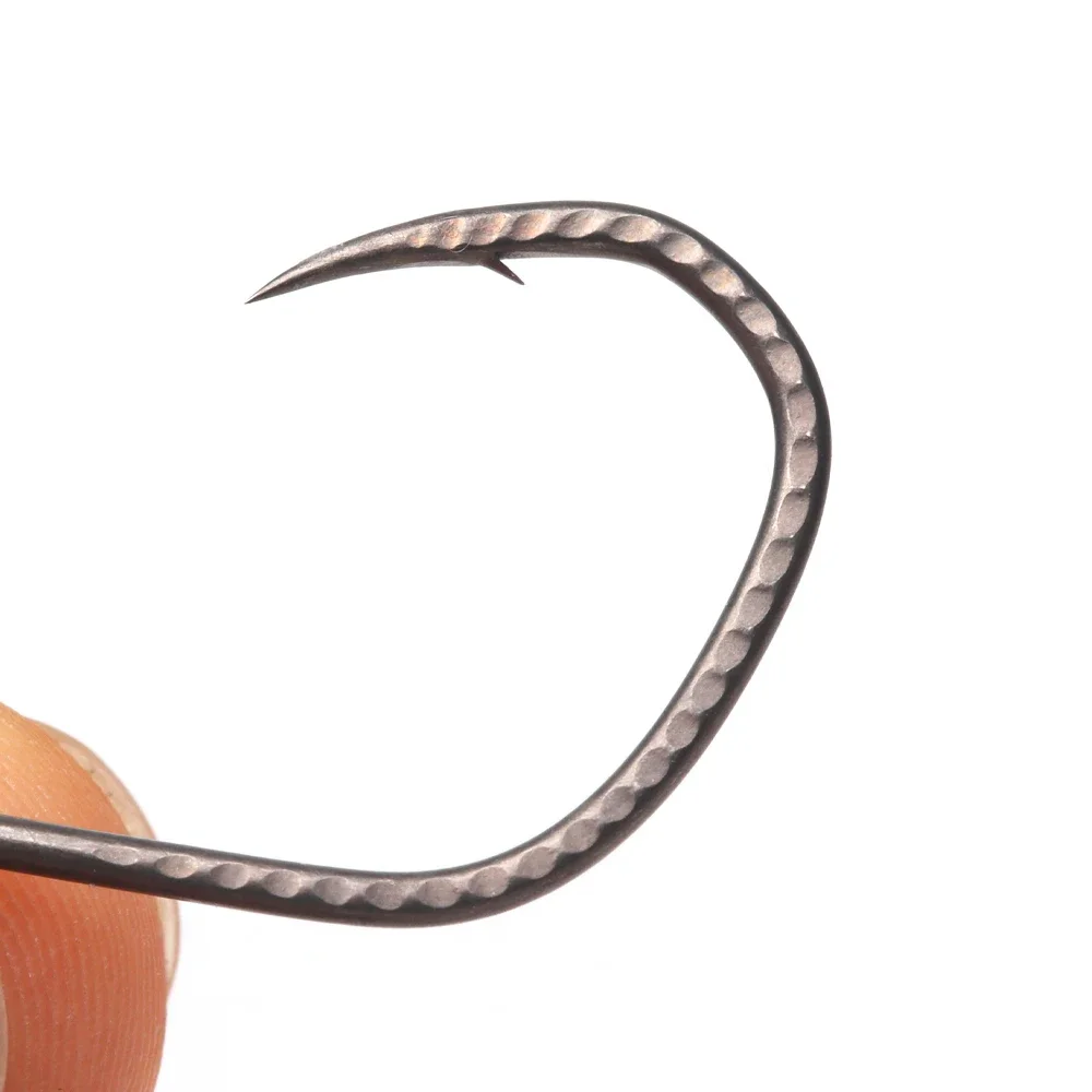 Gancho de acero con alto contenido de carbono, ojo cerrado, alta resistencia, alambre fuerte, punta de gancho en línea, amplio espacio, patrón de escamas de dragón tratado, punta ultra afilada, púas