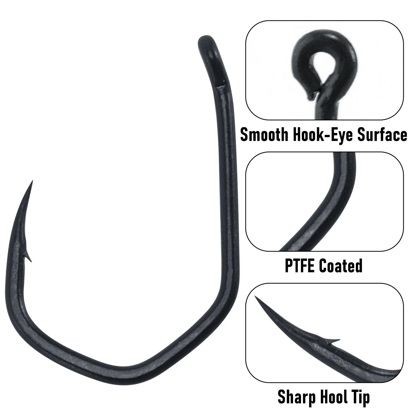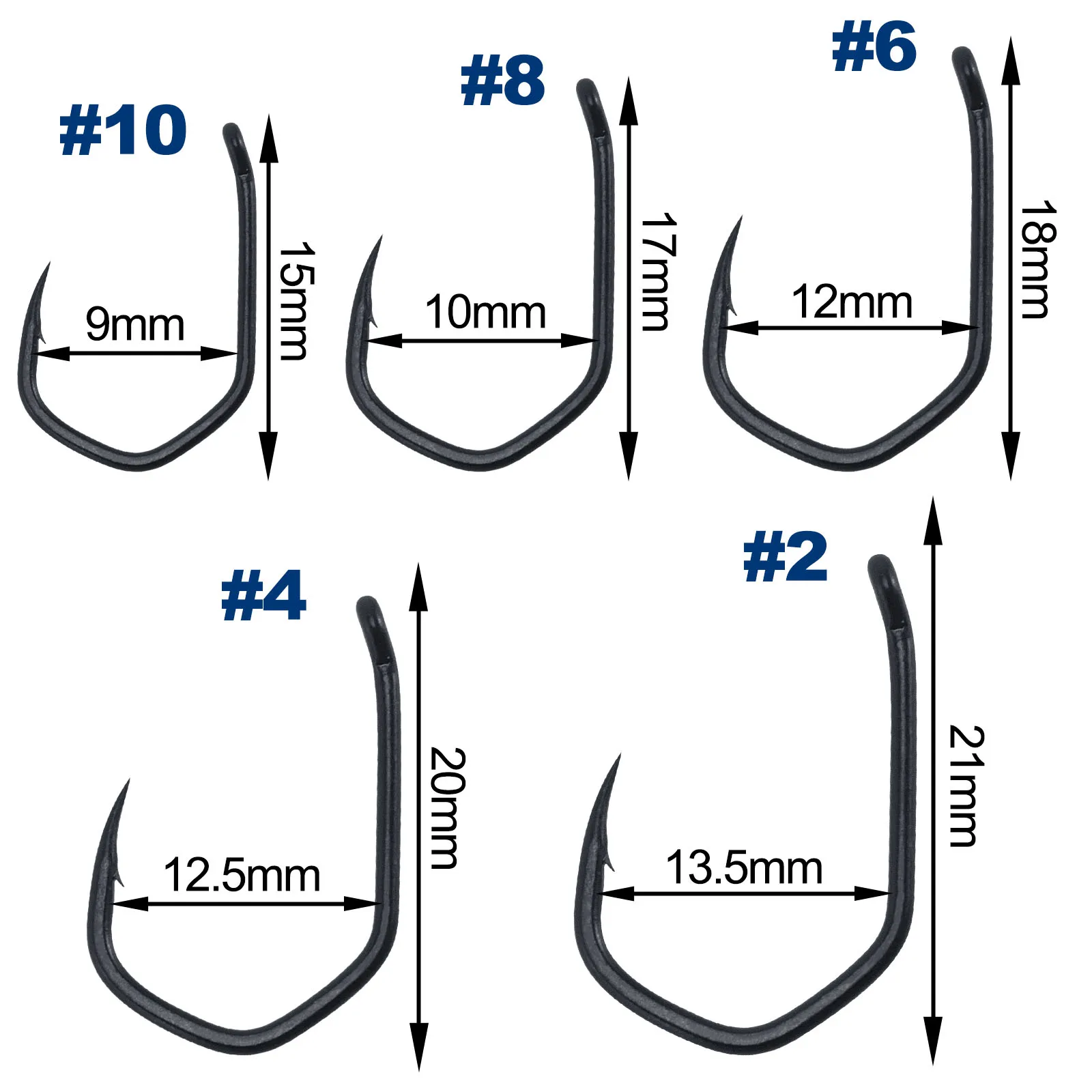 Hay una variedad de tamaños disponibles, incluido el anzuelo de tamaño 8 más popular, para satisfacer sus diversas necesidades de pesca de carpas.