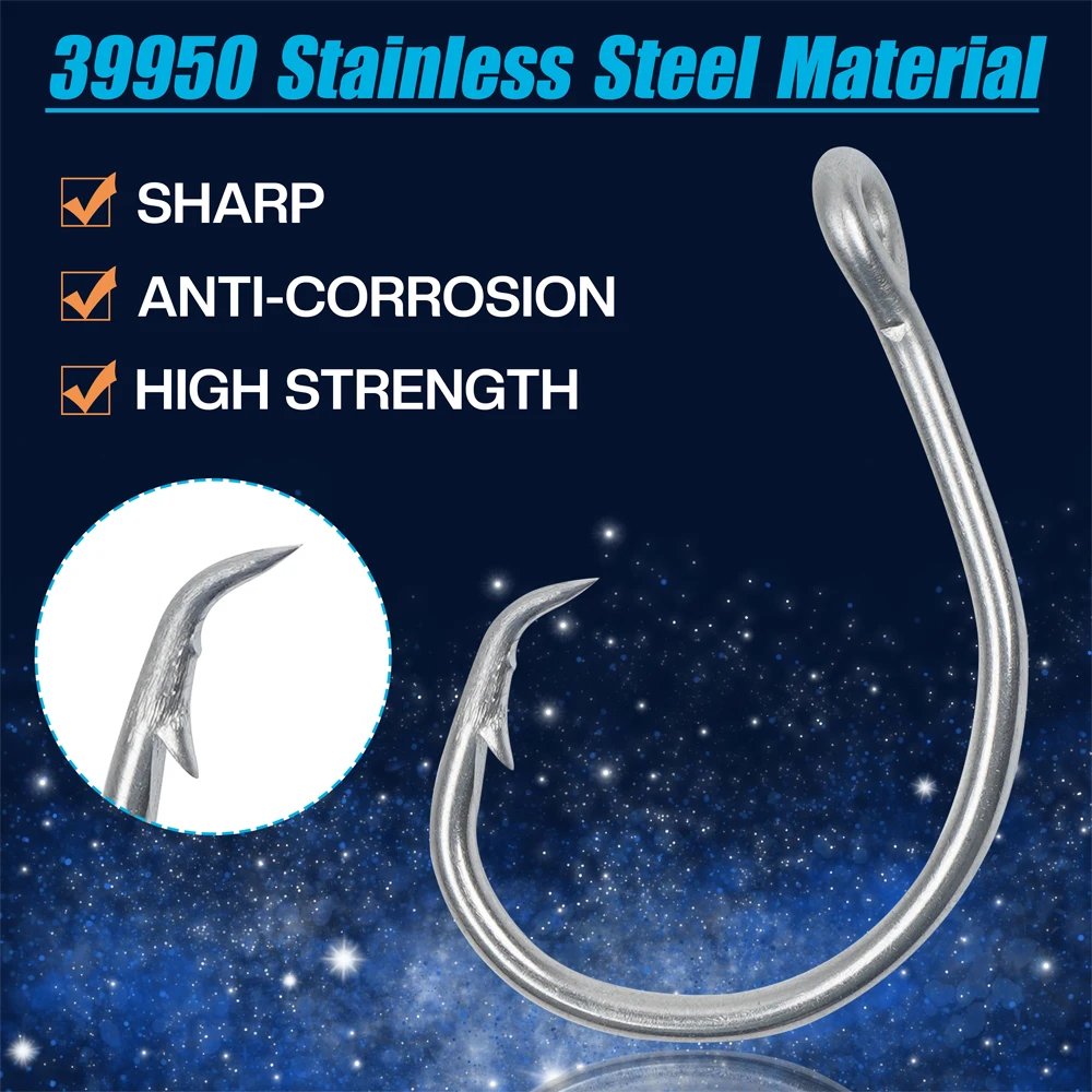 3. Los anzuelos circulares de acero inoxidable son realmente afilados, pueden sostener los peces grandes y apuñalarlos rápidamente en el cuerpo del pez, sin escapar mientras los mantienen vivos.