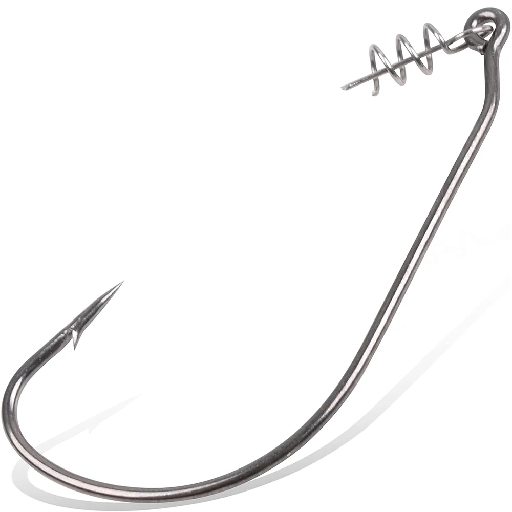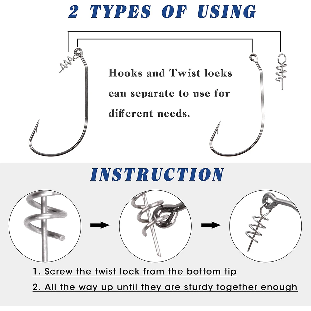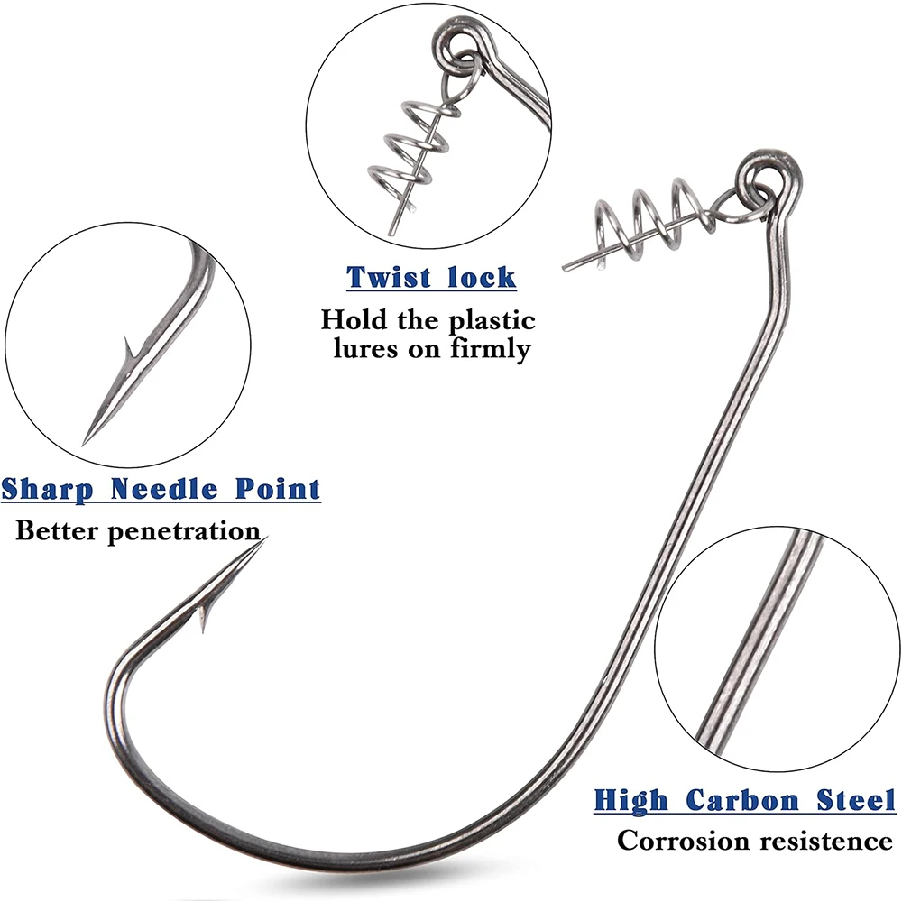 DISEÑO DE BLOQUEO TWIST: Resorte de pasador de centrado unido al ojo del anzuelo, los cebos se pueden asegurar permanentemente insertando el pasador en el centro de la nariz de un plástico blando, que se puede atornillar al resorte Twistlock para montarlo perfecto en todo momento.
