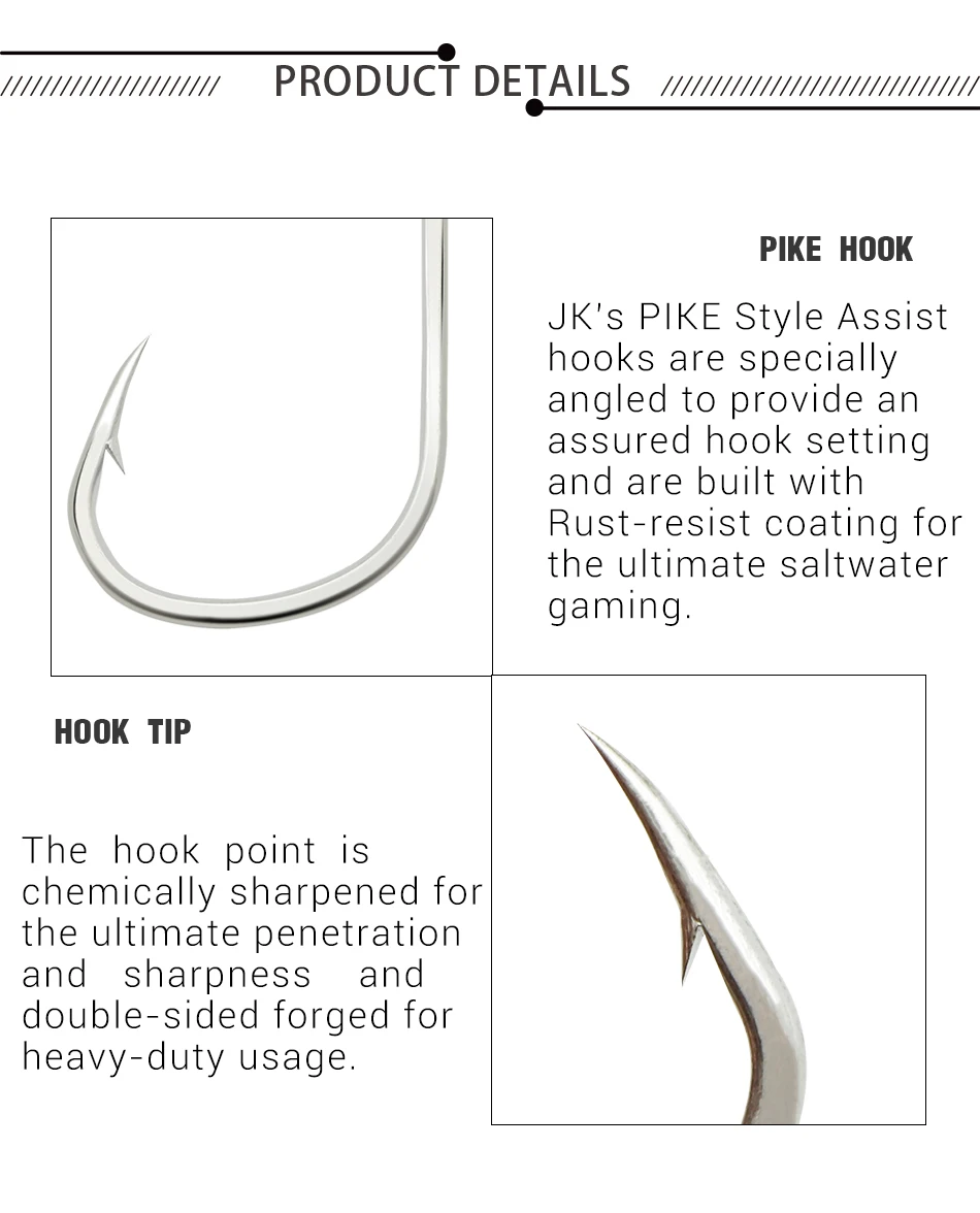 Aplicación: Ganchos de jigging Ganchos de asistencia Ganchos lentos Paso lento