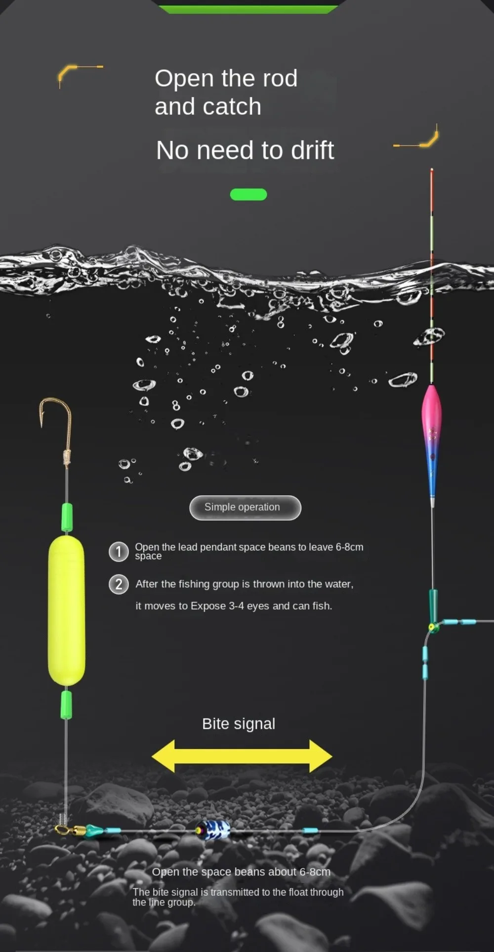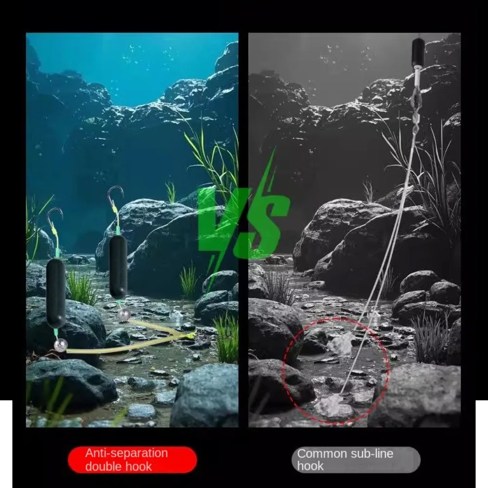 -Los anzuelos pueden flotar boca abajo bajo el agua, atrayendo más eficazmente a los peces para agarrar alimentos y aumentando las posibilidades de pescar más de tres veces.