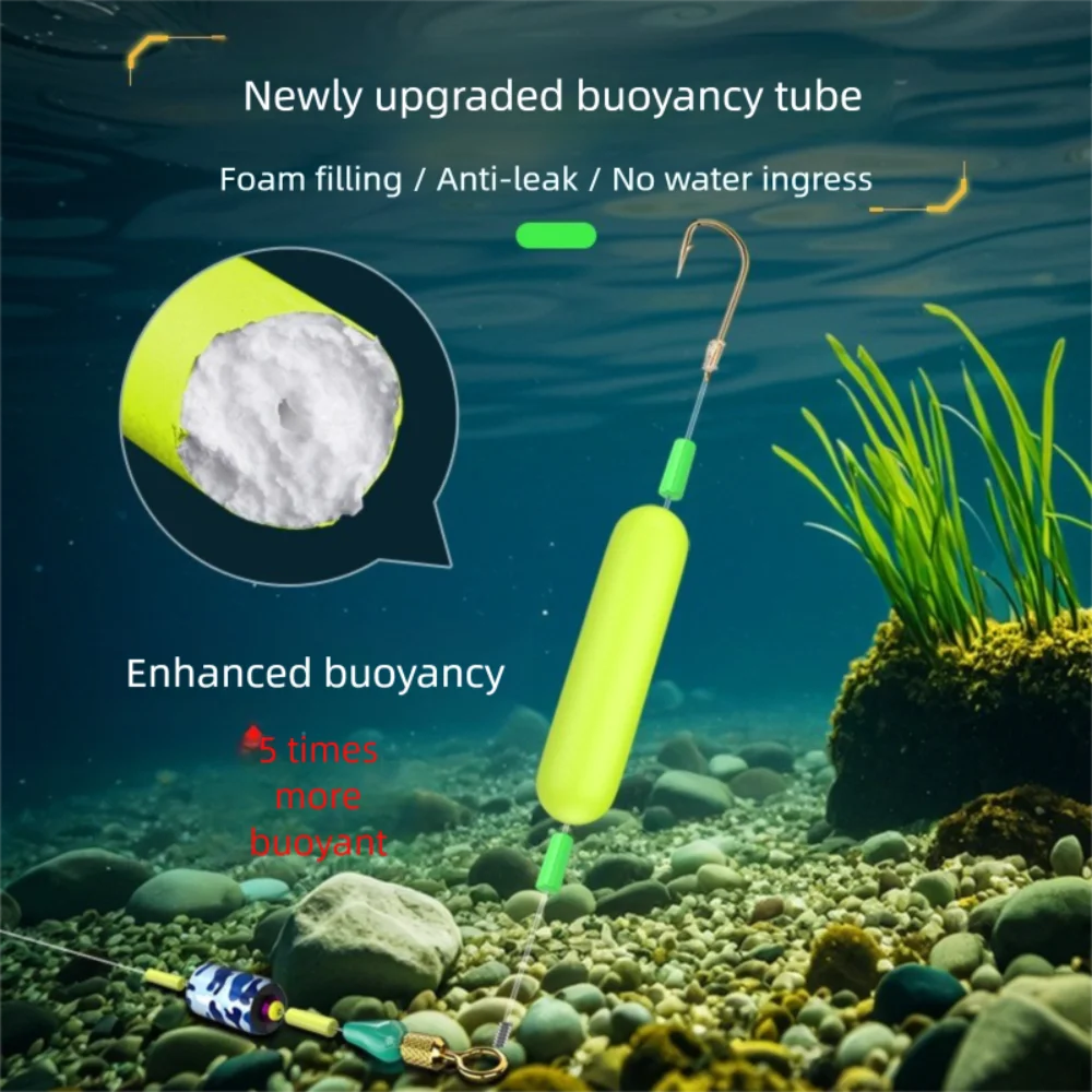 Tubo de flotabilidad de 30 Uds., tubo flotante de pesca listo para usar, accesorio de anzuelos de plomo a la deriva antiagua, juego de anzuelos de pesca