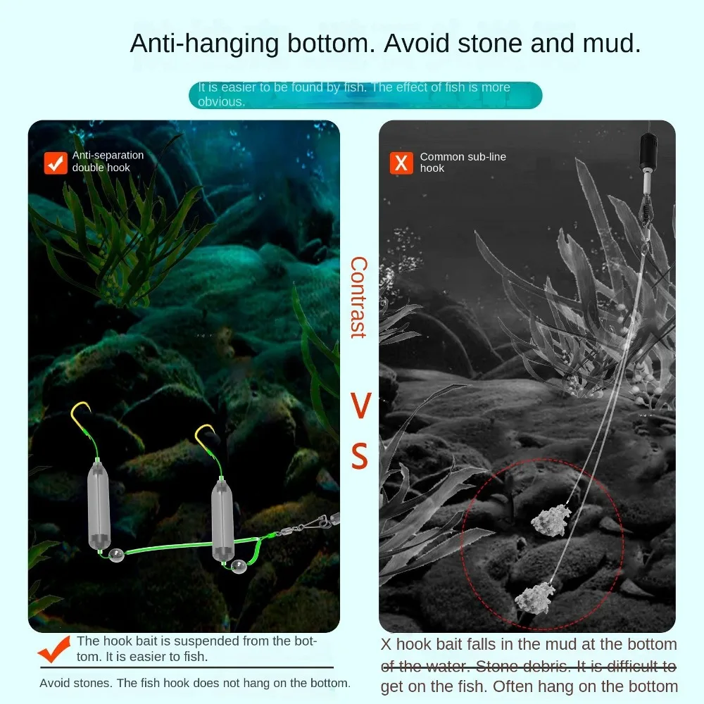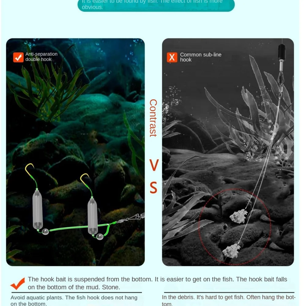 -Los anzuelos pueden flotar boca abajo bajo el agua, atrayendo más eficazmente a los peces para agarrar alimentos y aumentando las posibilidades de pescar más de tres veces.