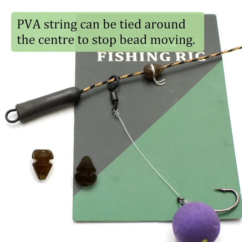 La cuerda de PVA se puede atar alrededor del centro para evitar que la cuenta se mueva.