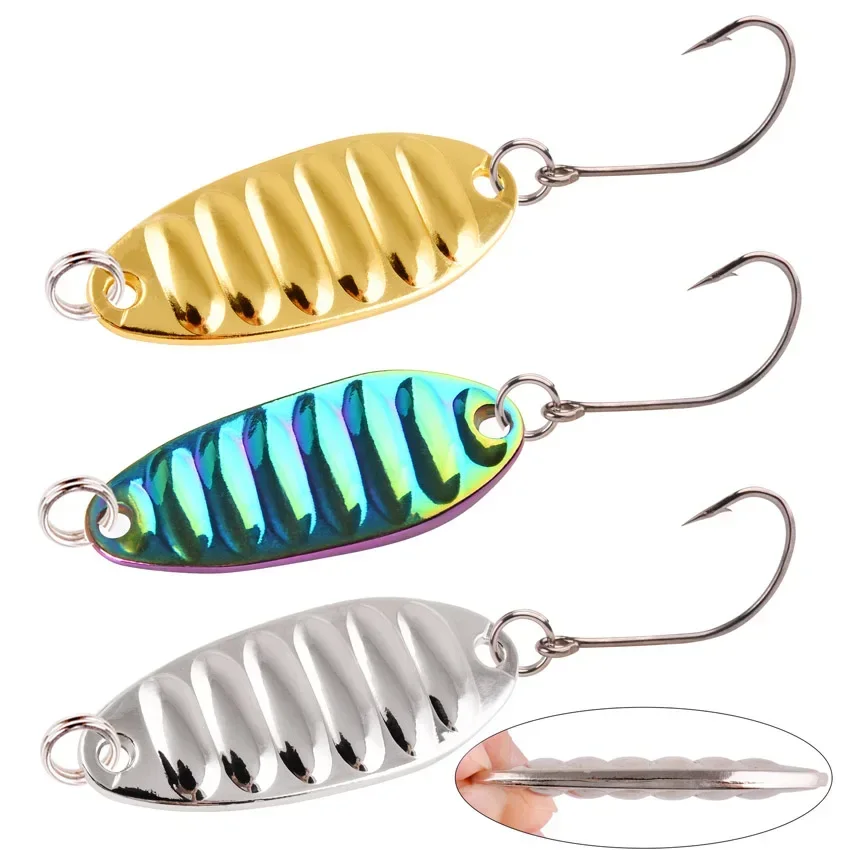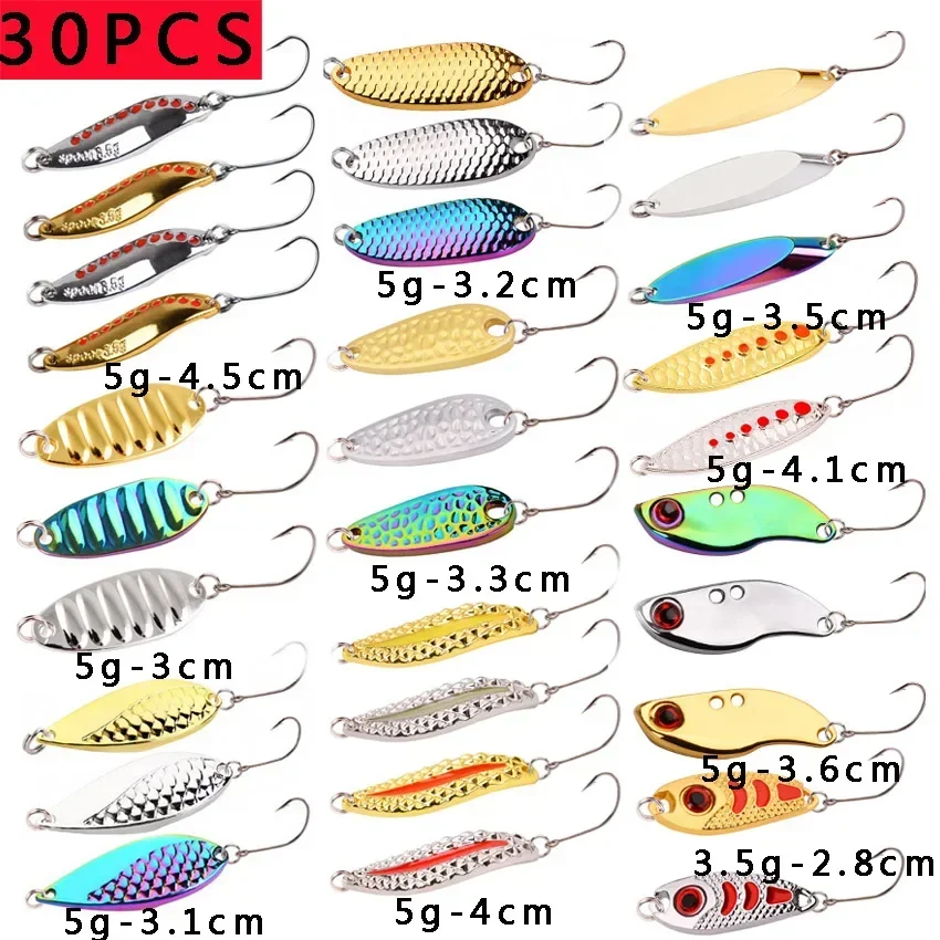Descripción:a.Alta tasa de éxito de pesca.b.Fuerte calidad y duradero, no es necesario cambiar el señuelo de vez en cuando durante la pesca.c. Diseño limpio y misericordioso, no es necesario ensuciarse las manos para matar los gusanos de los animales pequeños.d.Anzuelo de púas de acero con alto contenido de carbono. Una vez que el pez muerde el señuelo, nunca podrá escapar más.Especificación:Material: MetalPeso: Peso en gramos mixtosGancho: Gancho único con púas de acero con alto contenido de carbonoColor: multicolor (como muestra la imagen)Cantidad: 30 piezasEl paquete incluye 1 bolsa x señuelos de cuchara de Metal para cebo de trucha