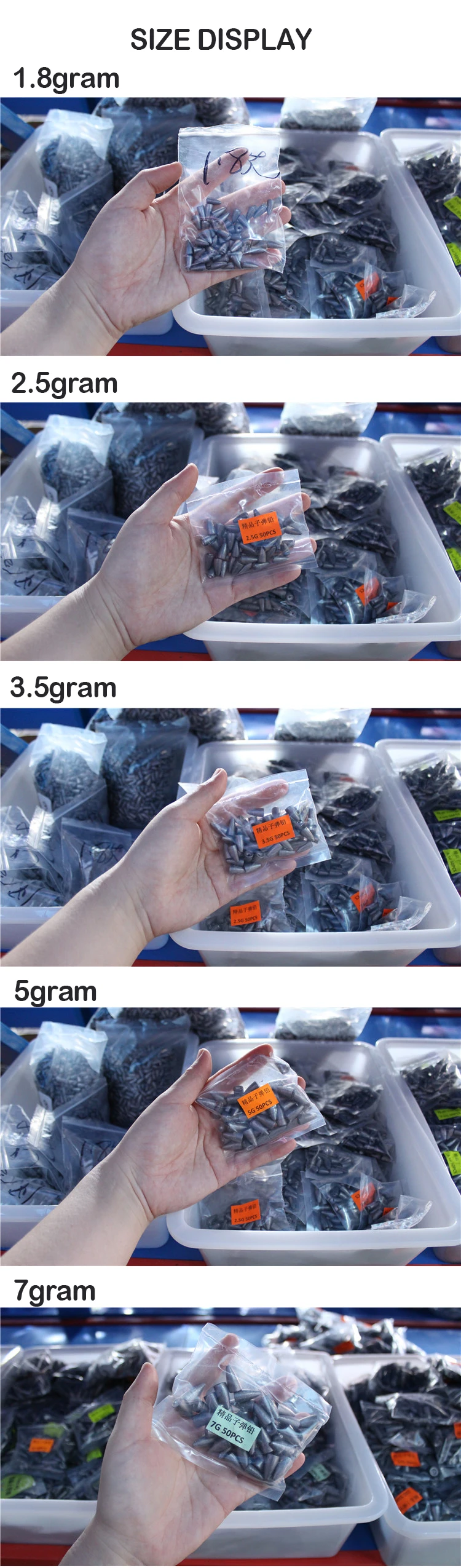 Cantidad: 2,5 g 8 piezas; 3,5 7 piezas; 5 g 6 piezas; 7 g 5 piezas; 10 g 4 piezas