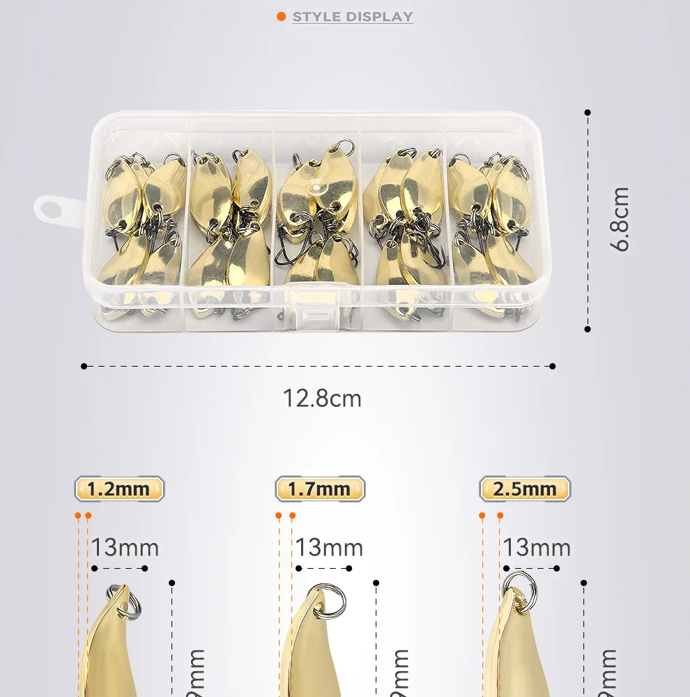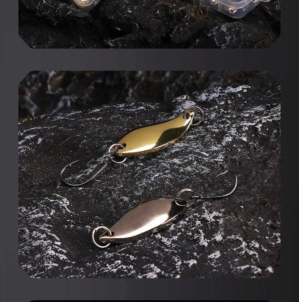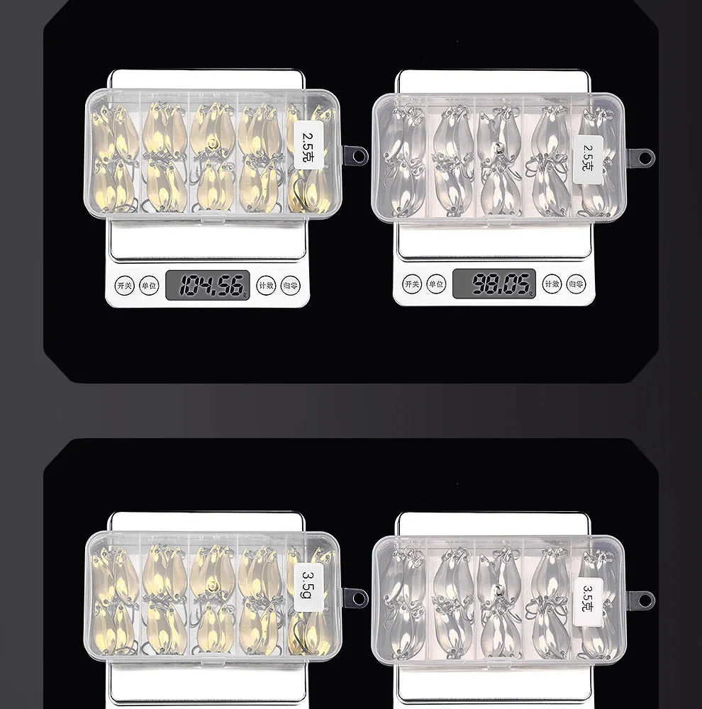 30 unids/caja 2,5g 3,5g 5g Señuelos de pesca con mosca giratorio anzuelos cuchara Artificial cebo moscas insectos señuelos cebo trucha lubina