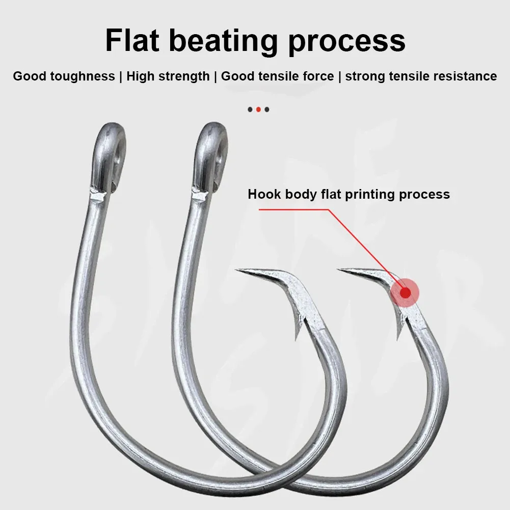 30 unids/caja anzuelos circulares de pesca de acero inoxidable tiburón atún cebo vivo anzuelos de bagre agua salada juego grande anzuelo de pesca de espacio ancho