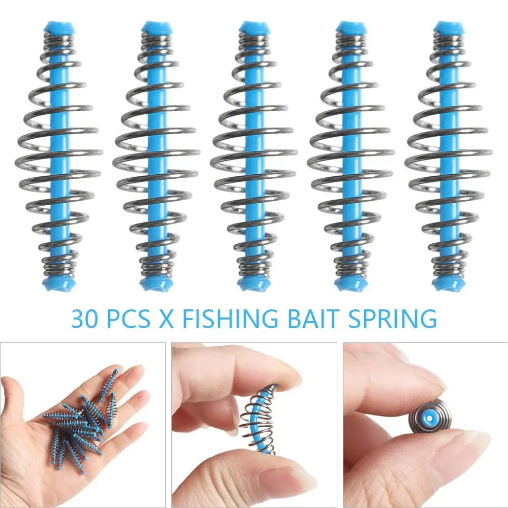 30 unids/set cebo de pesca señuelo de resorte aparejos colgantes en línea alimentador de acero inoxidable