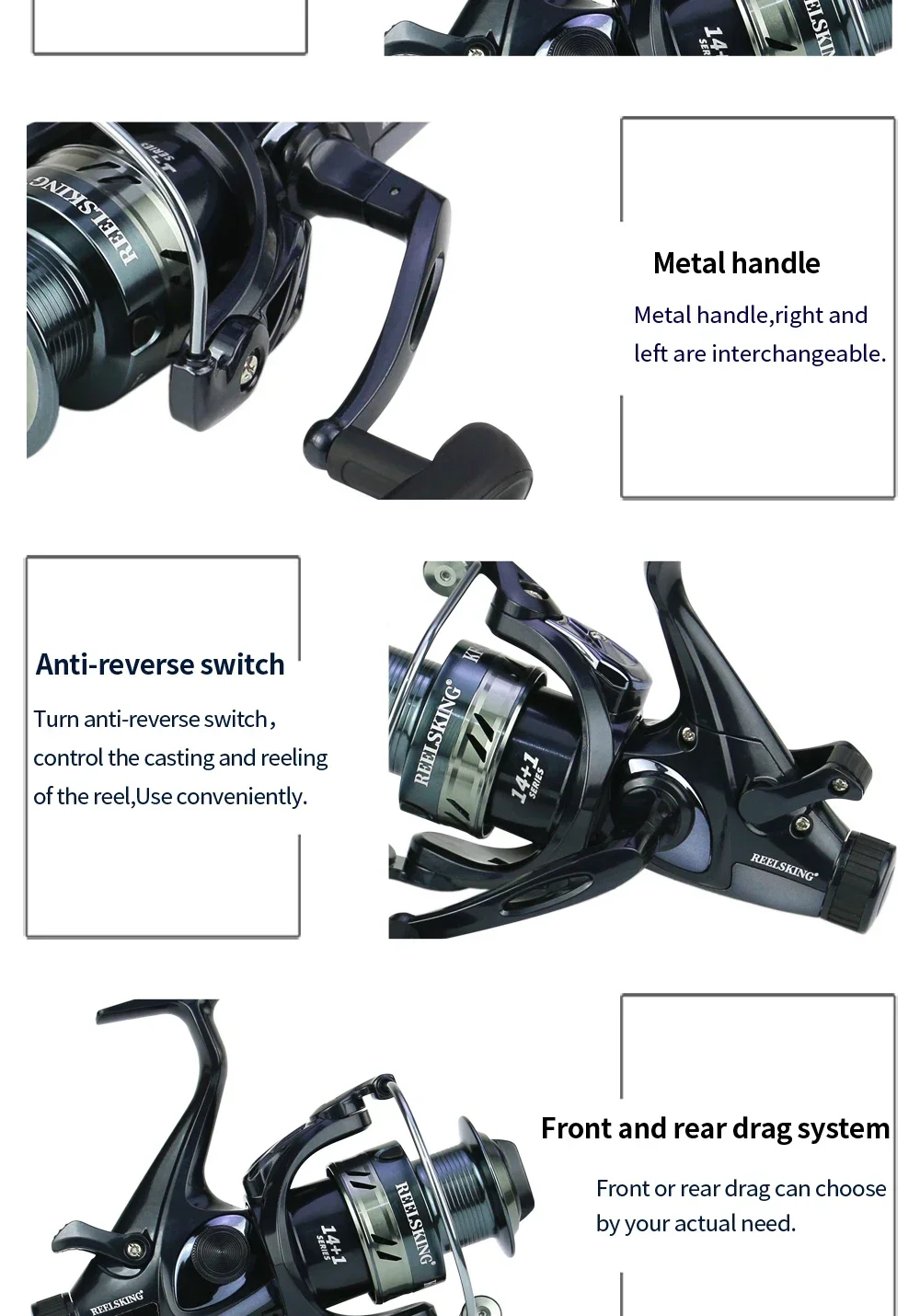 4.Sistema de frenado delantero y trasero.Se puede cambiar según las necesidades reales de pesca, lo que le ayuda a capturar peces grandes.