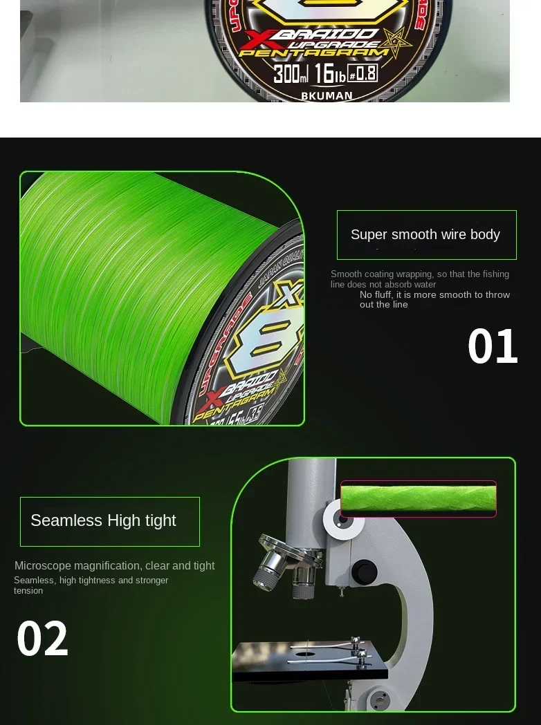300M 500M Japón PE X8 actualización verde hundimiento tipo 14LB-80LB PE línea de pesca trenzada de alta resistencia para carrete de pesca de carpa lubina