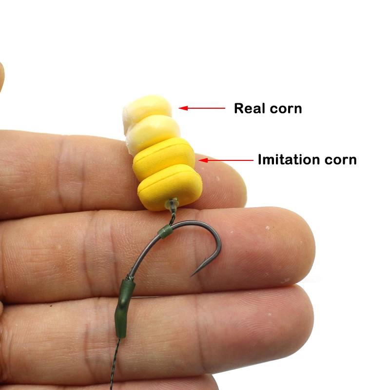 cebo de pesca de carpa de maíz con imitación. Maíz emergente reutilizable de alta calidad.Se puede utilizar con maíz real para hacer aparejos emergentes, en la cima de bolitas para hacer aparejos de muñecos de nieve o cualquier otra de varias maneras.