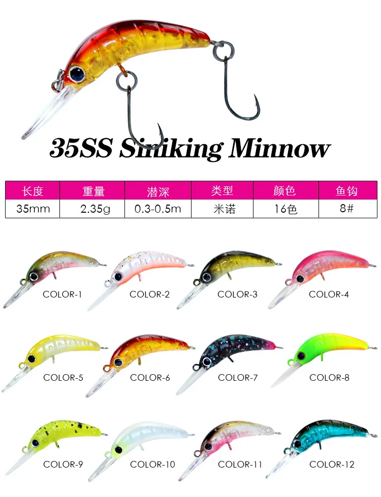 35mm 2,3g hundimiento Minnow Micro señuelo de pesca Mini Crankbait Wobblers para corriente de agua dulce cebos de trucha pesca de lubina perca