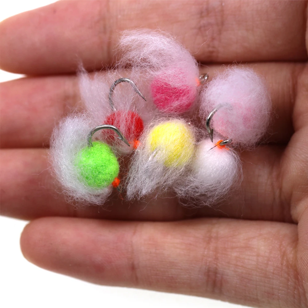 Pesca con mosca de trucha, huevo desnudo, moscas, insectos brillantes, tamaño 12