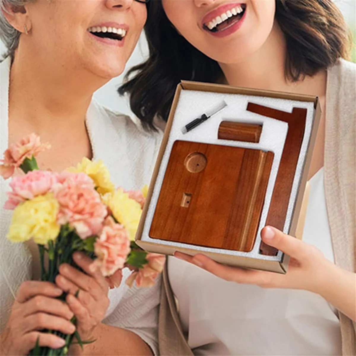 Caja de almacenamiento integrada:El soporte para teléfono con soporte para hilo de madera cuenta con una caja de almacenamiento integrada que mantiene todos sus elementos esenciales de crochet organizados y al alcance, lo que lo convierte en el soporte para hilo de madera perfecto para sus necesidades de manualidades.