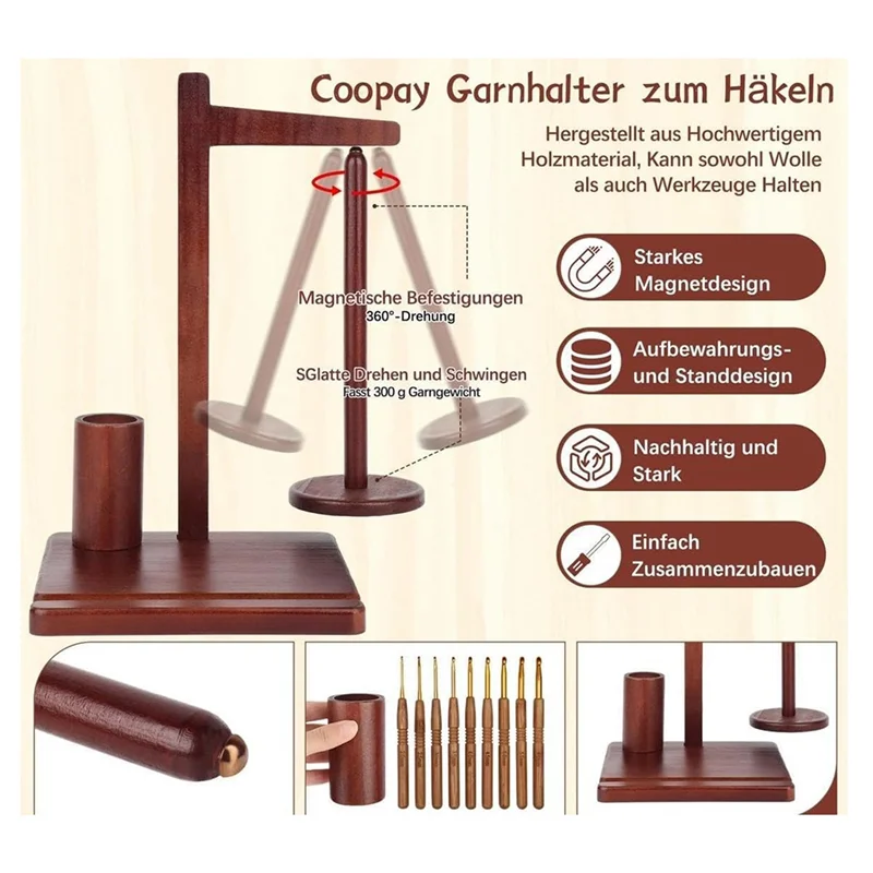 Sistema magnético avanzado: con su avanzado sistema de soporte de hilo magnético, este soporte de hilo de madera con soporte para teléfono permite un ajuste suave de 360 grados° rotación, eliminando el hilo enredado y asegurando una experiencia de crochet perfecta con cada proyecto.