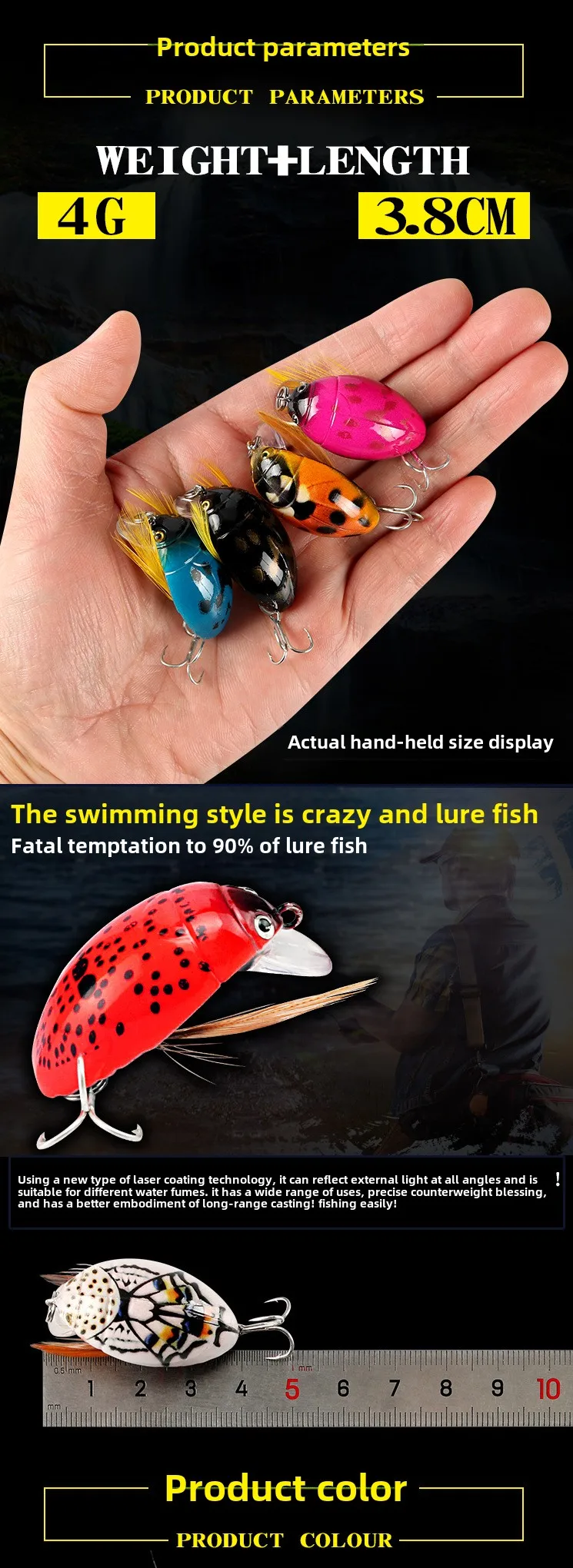 3.8g Isca Micro Wobblers SwimbaitTopwater Bionic Beetle Señuelo de Pesca Cicada Decoys Flotante Liflike Artificial Insecto Cebo Dura