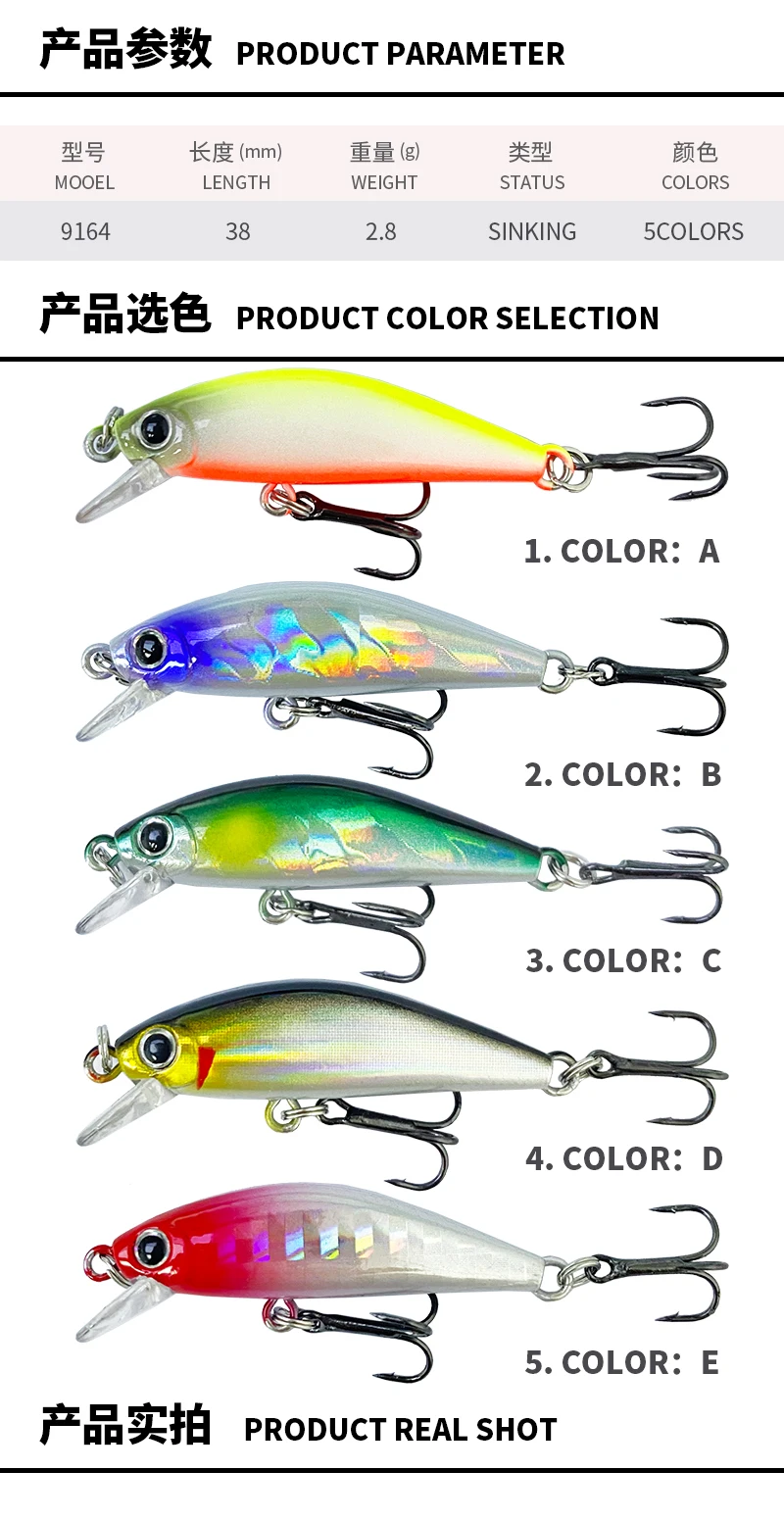 38mm 2,8g Mini señuelo pececillo que se hunde cebos artificiales para trucha de agua dulce lubina Pesca Wobblers Jerkbait Swimbait suministros de Pesca