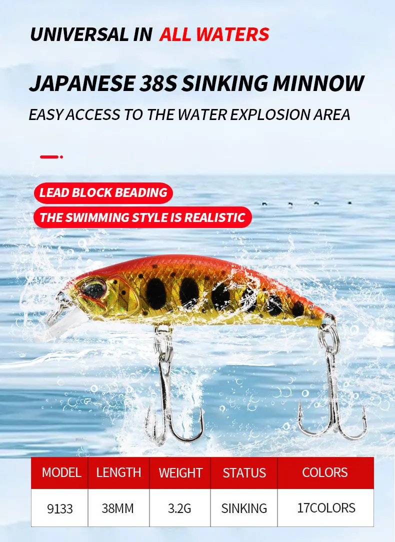 Mini Minnow hundido 38mm 3.2g pesca de carpa Isca Artificial Micro Minnow señuelo Wobbler pesca Swimbait señuelo trucha Minnow cebo de pesca