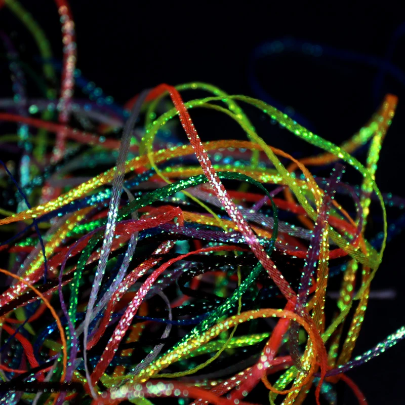 Esta trenza plana de diamantes tiene muchas superficies reflectantes con tonos nacarados para darle a la mosca un cuerpo brillante y realista. Hace cuerpos perfectos tanto para patrones de agua salada como de agua dulce. Puedes atar moscas desde una serpentina de agua salada 2/0 hasta la talla 14 # emergente con este material