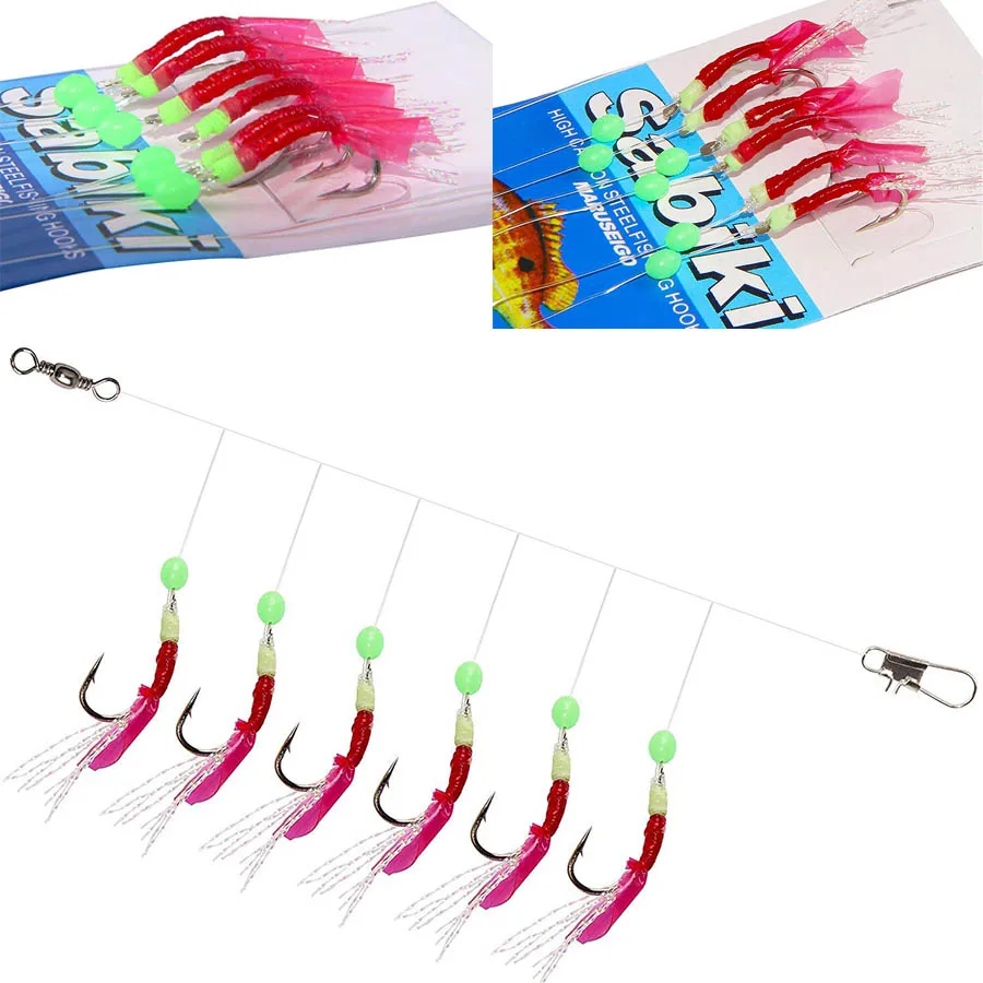 3Pack Sabiki Visaas Rigs 8-15# Zoutwatervissen 6 rigs/pak String Hook Lichtgevende Kralen Makreel Pesca Visgerei String Vishaken