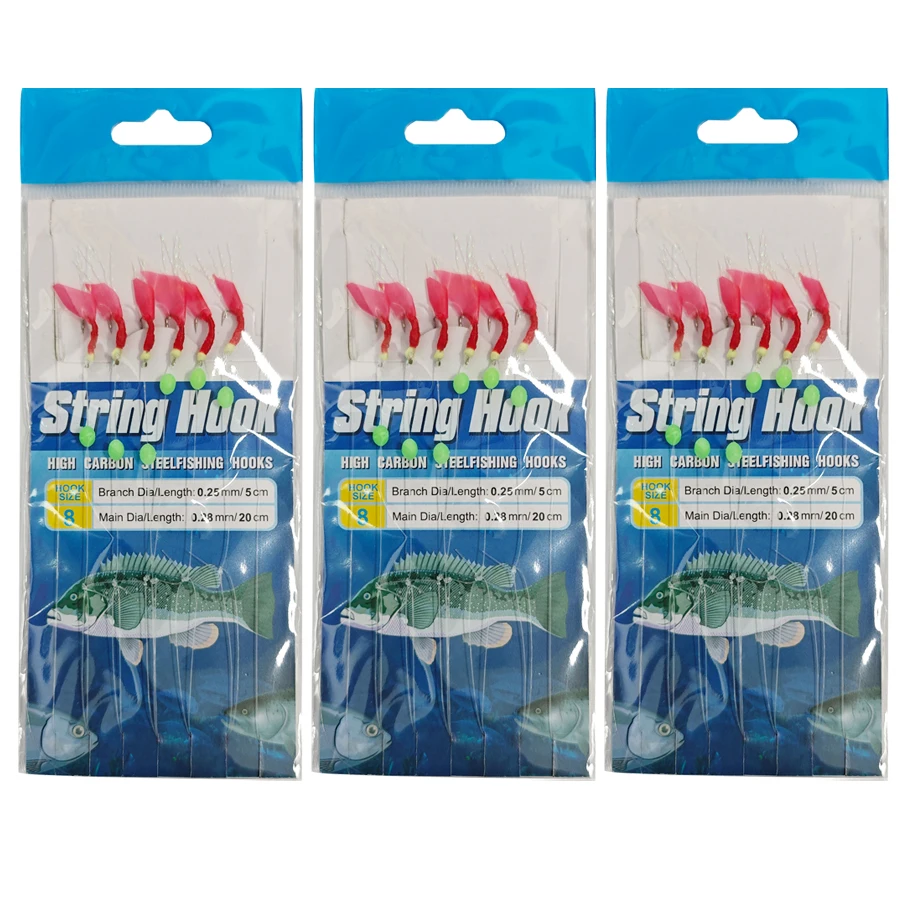 3Pack Sabiki Visaas Rigs 8-15# Zoutwatervissen 6 rigs/pak String Hook Lichtgevende Kralen Makreel Pesca Visgerei String Vishaken